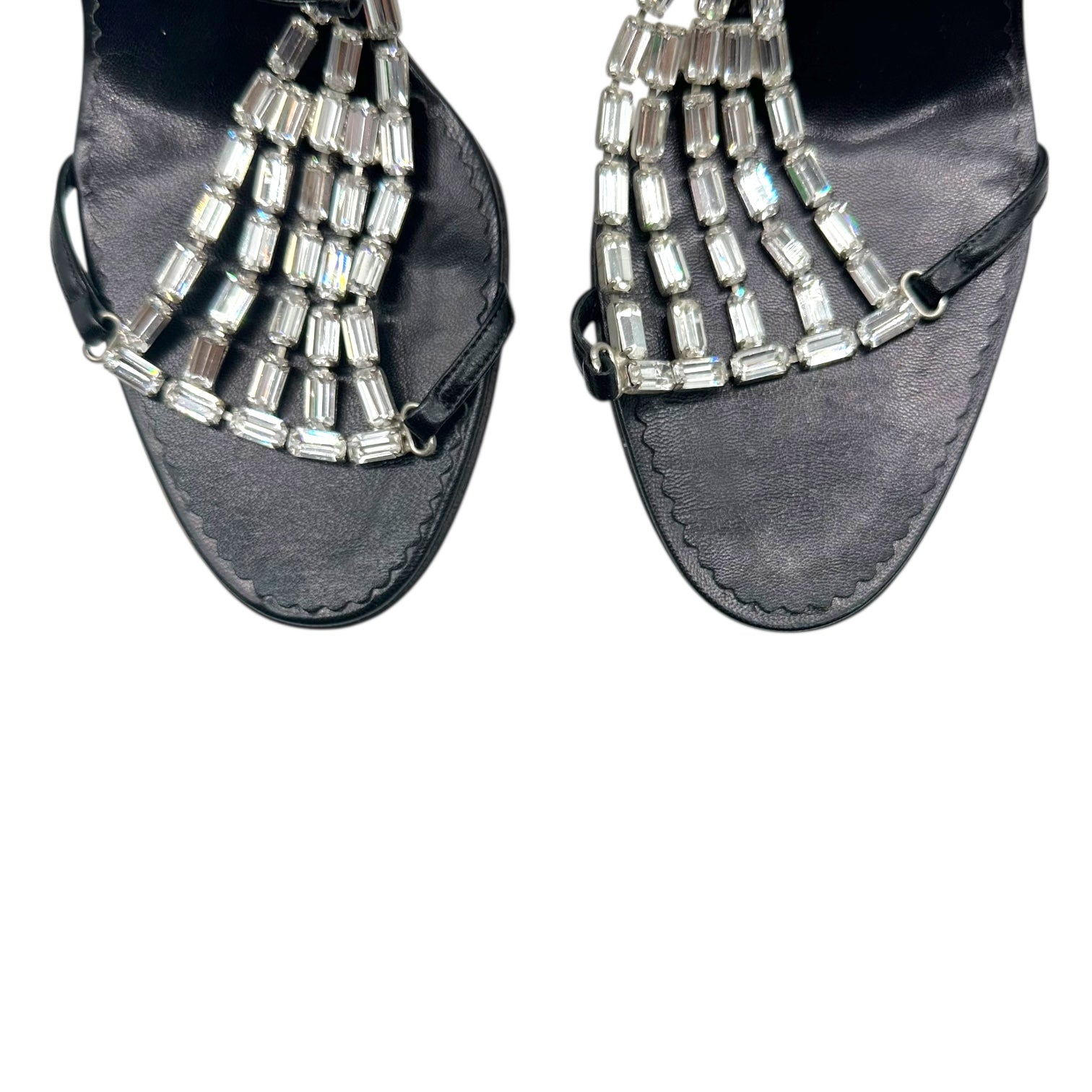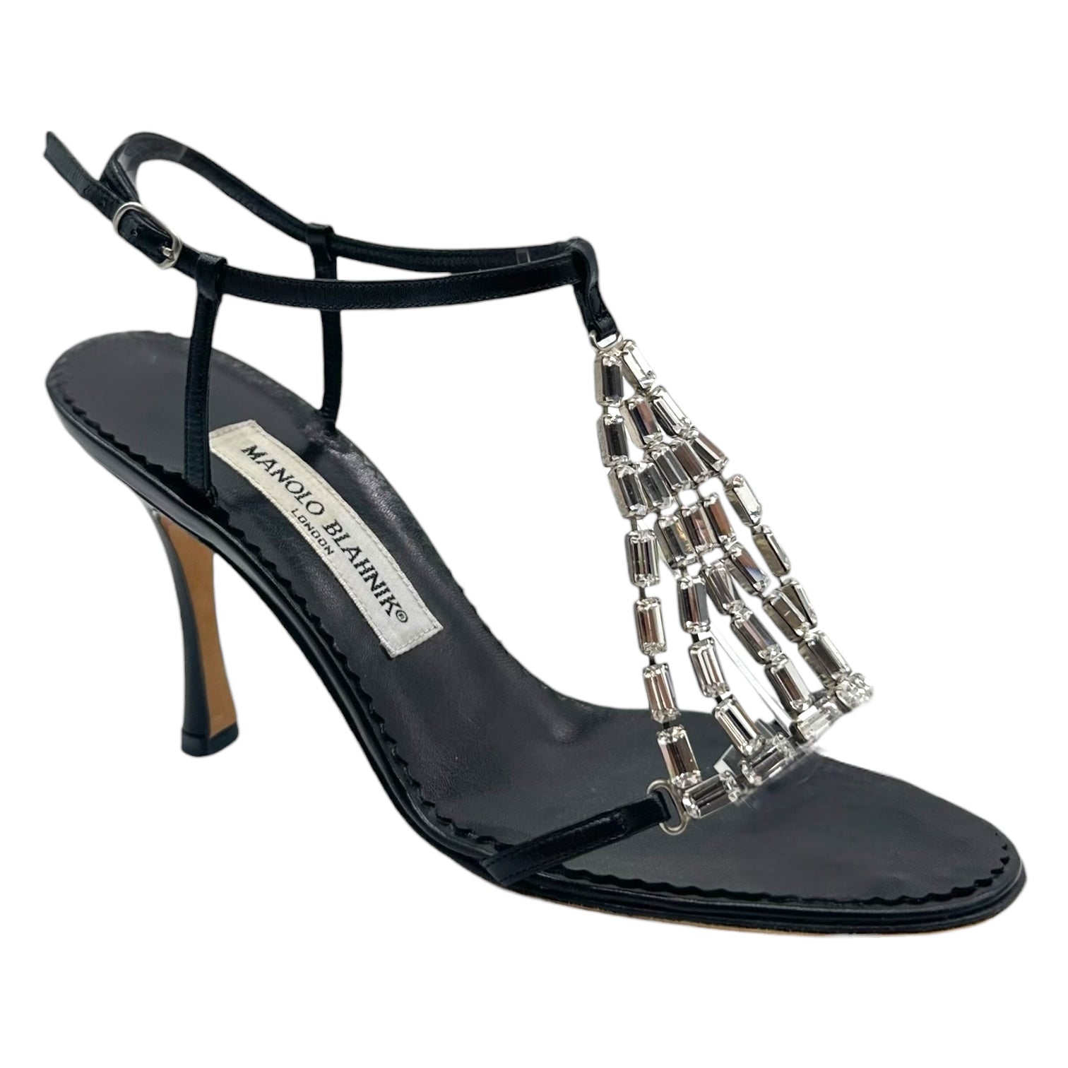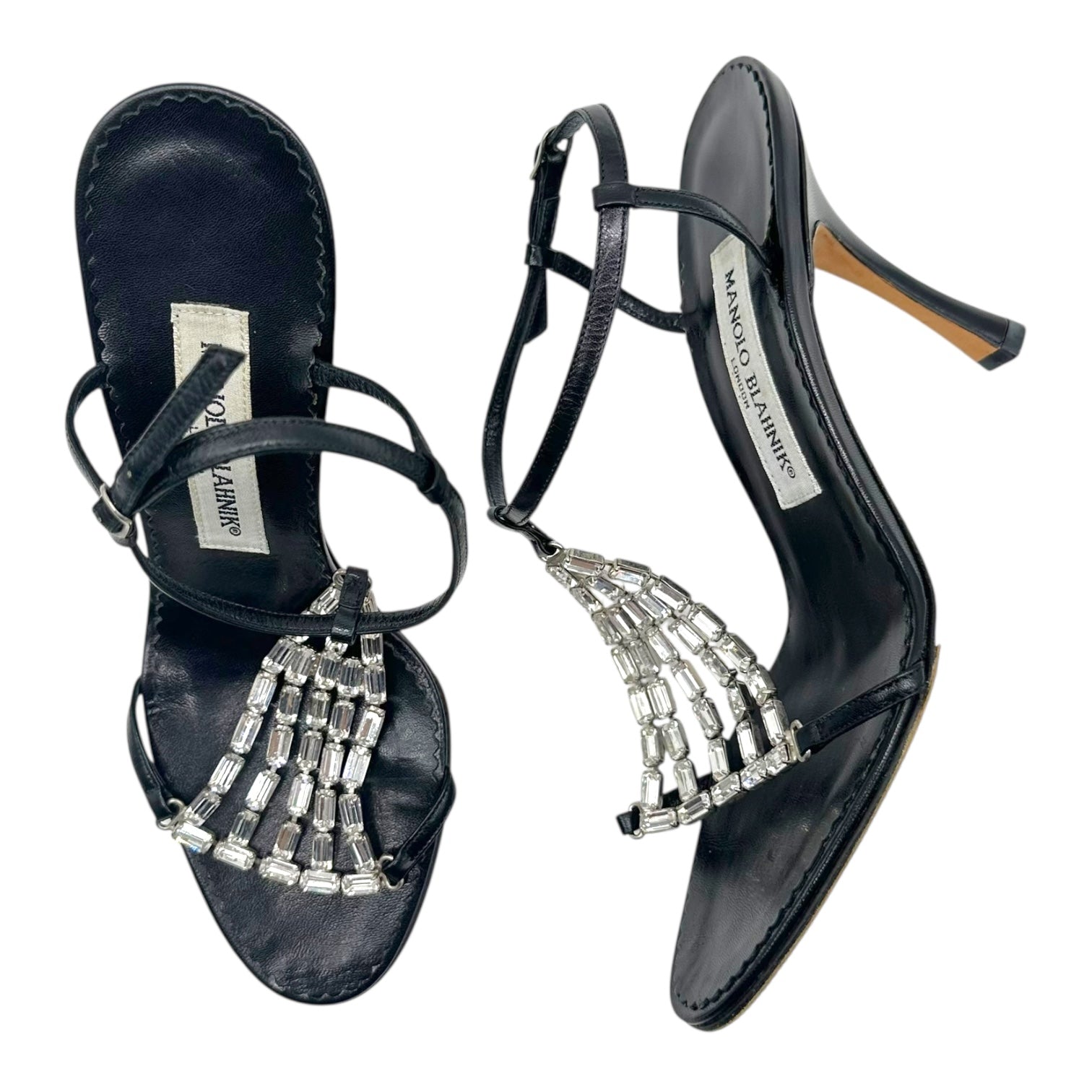 Manolo Blahnik Black Crystal Embellished Heeled Sandals