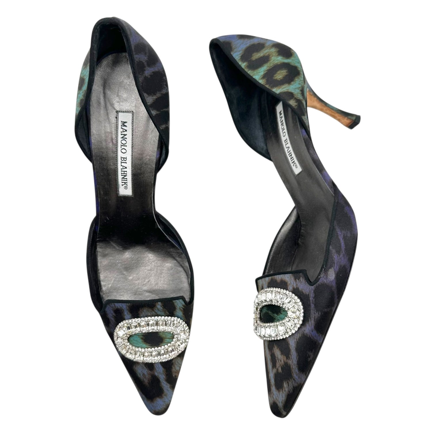 Manolo Blahnik Purple Leopard Print D'Orsay Kitten Heels