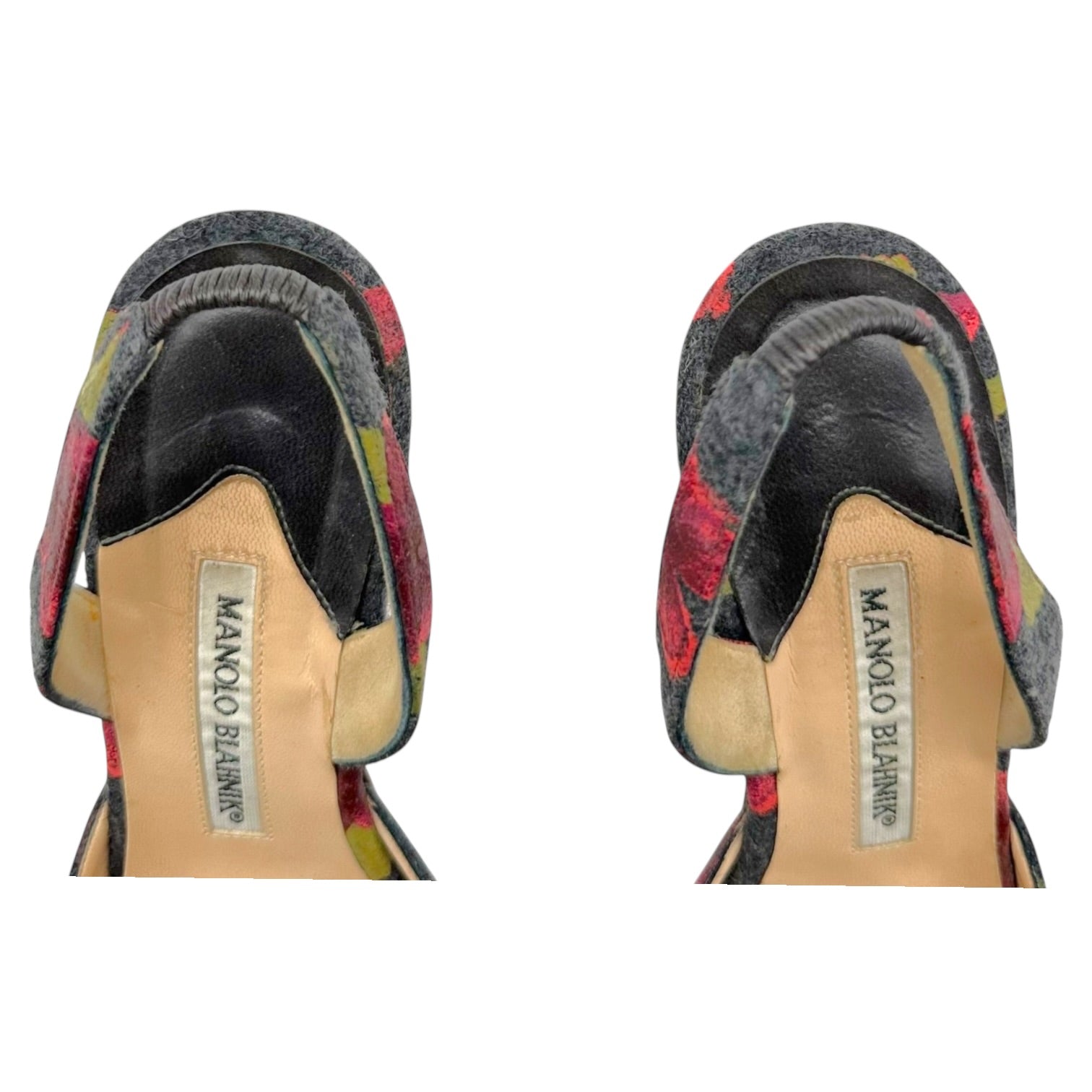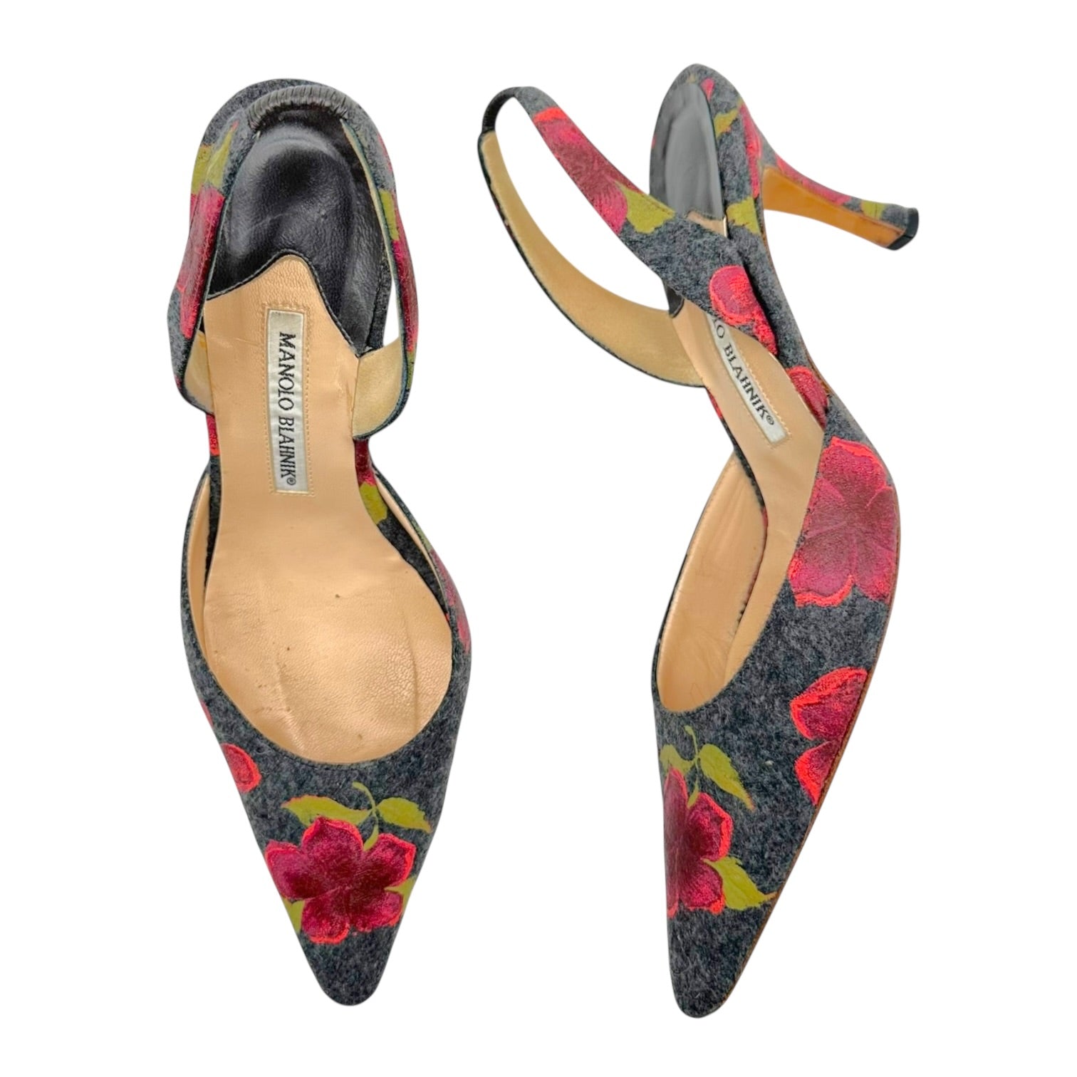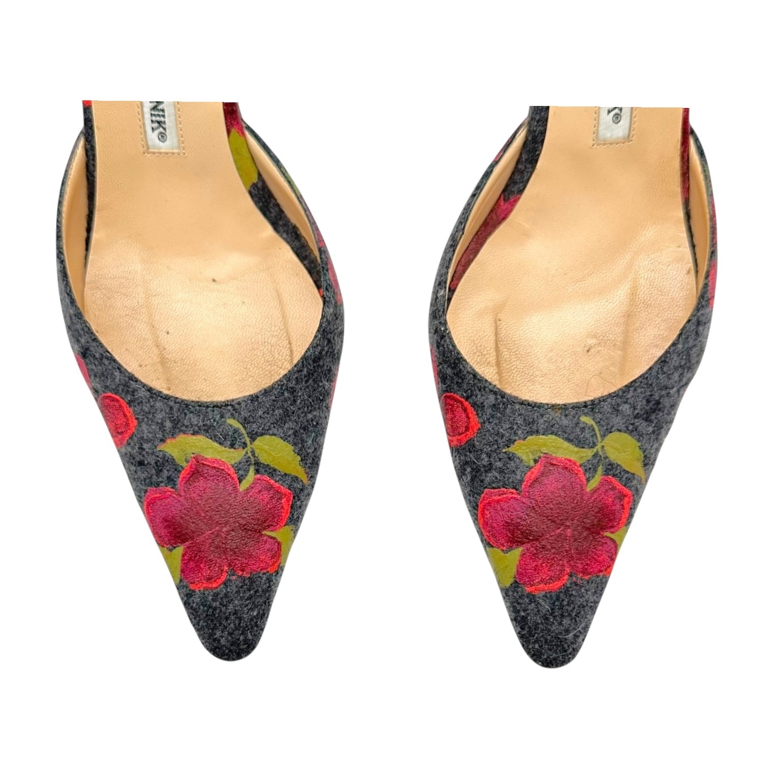 Manolo Blahnik Rose Hand Painted Slingback Heels
