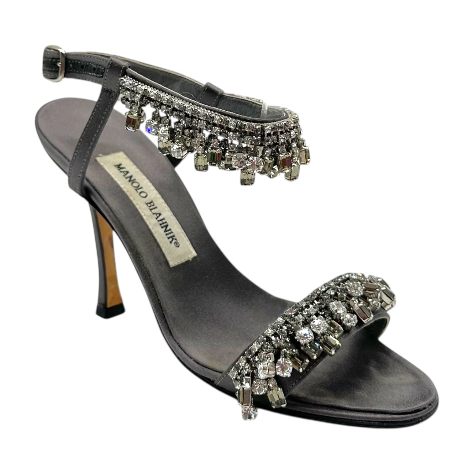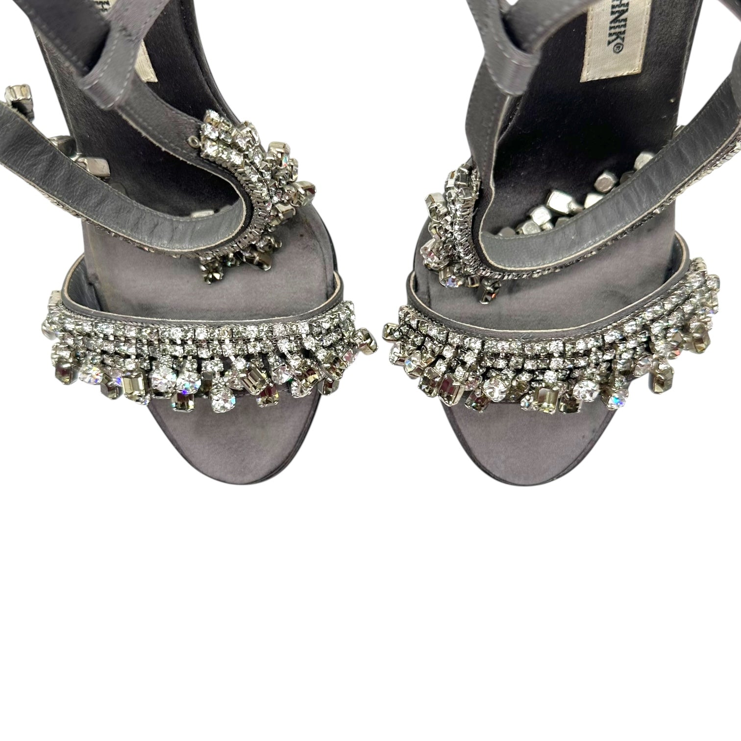 Manolo Blahnik Silver Crystal Embellished Heeled Sandals