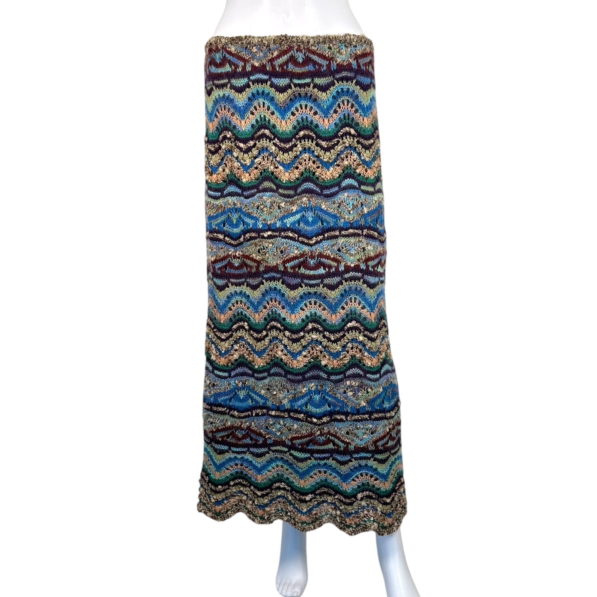 Missoni Blue Thick Chevron Knit Maxi Skirt