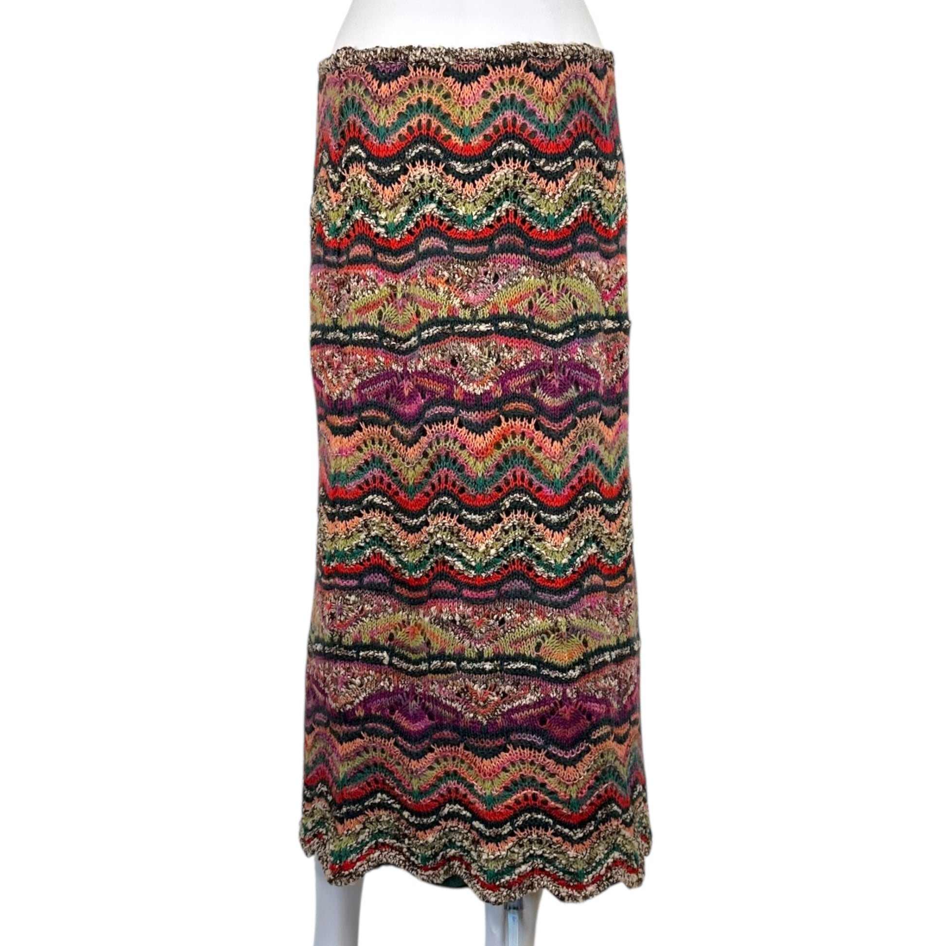 Missoni Pink Multicolor Thick Chevron Knit Maxi Skirt