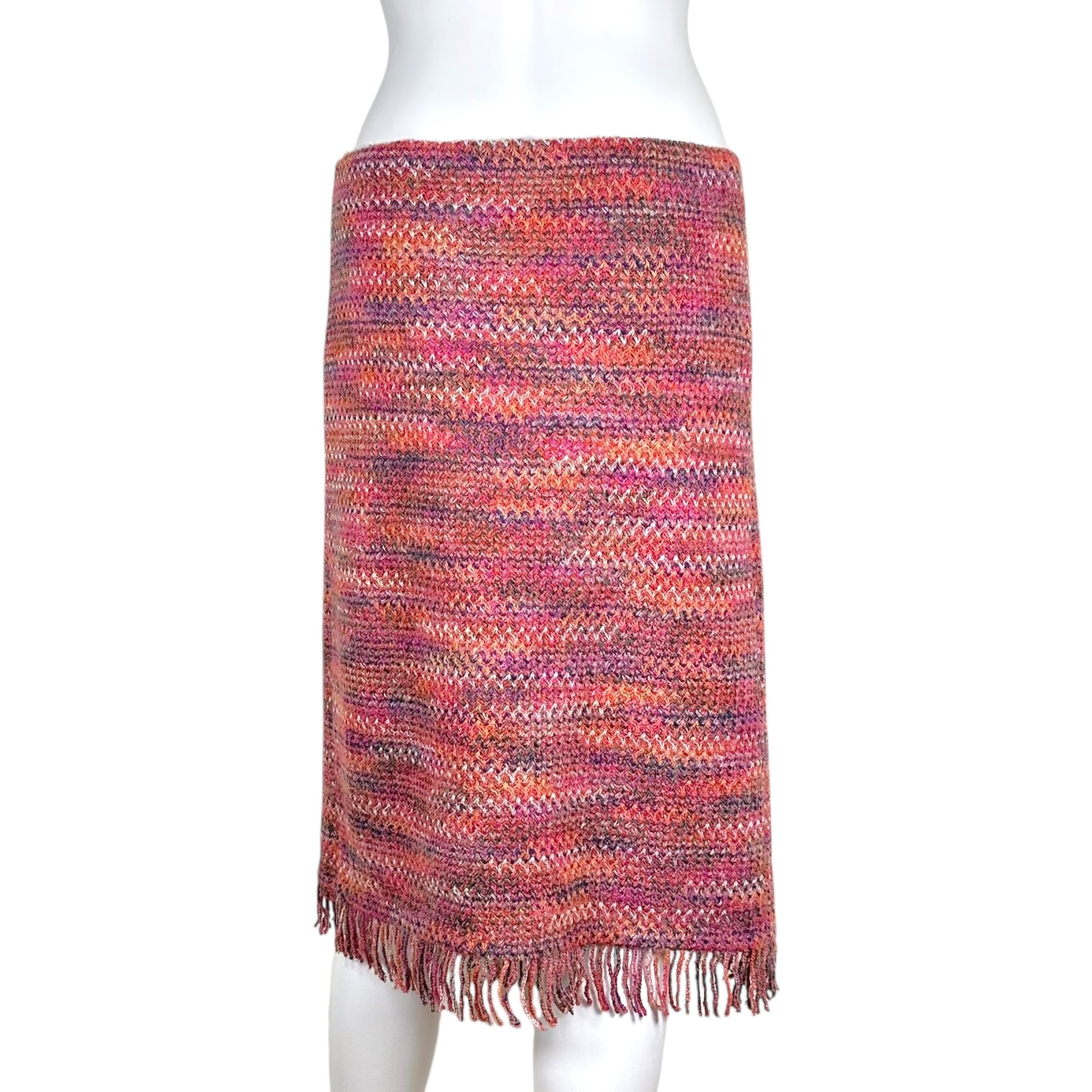 Missoni Pink Wool Knit Fringe Trim Midi Skirt