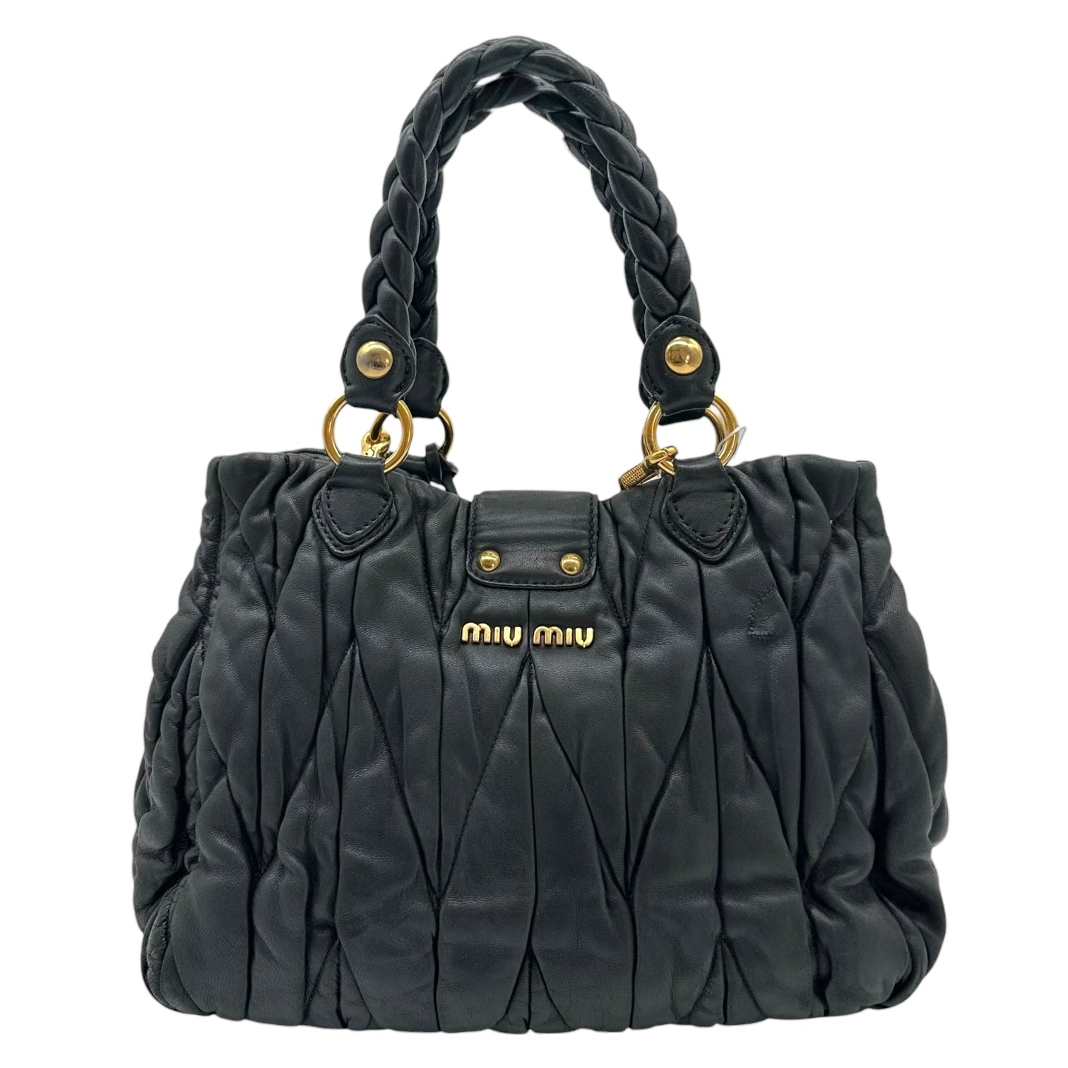 Miu Miu Black & Gold Quilted Matelasse 2-Way Bag