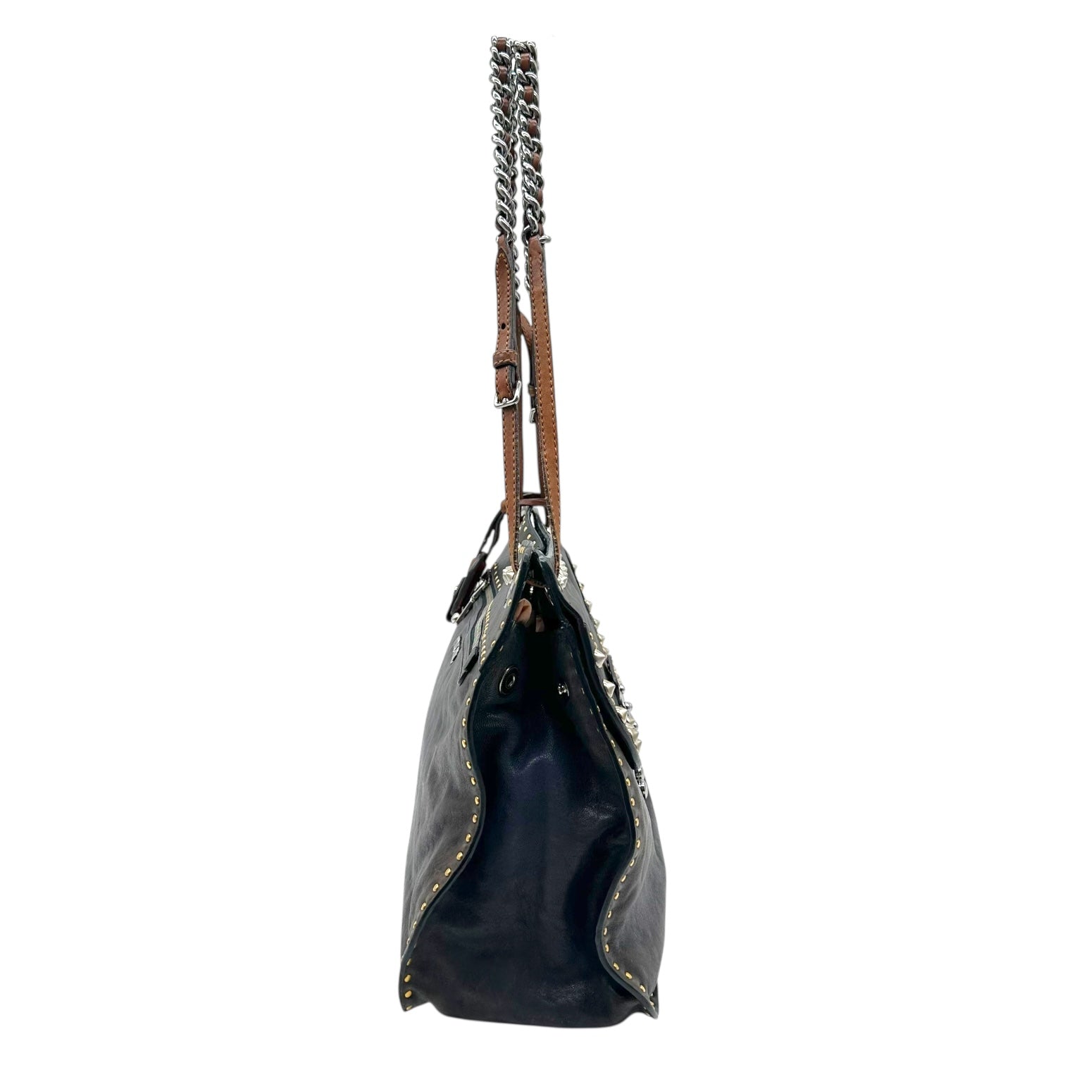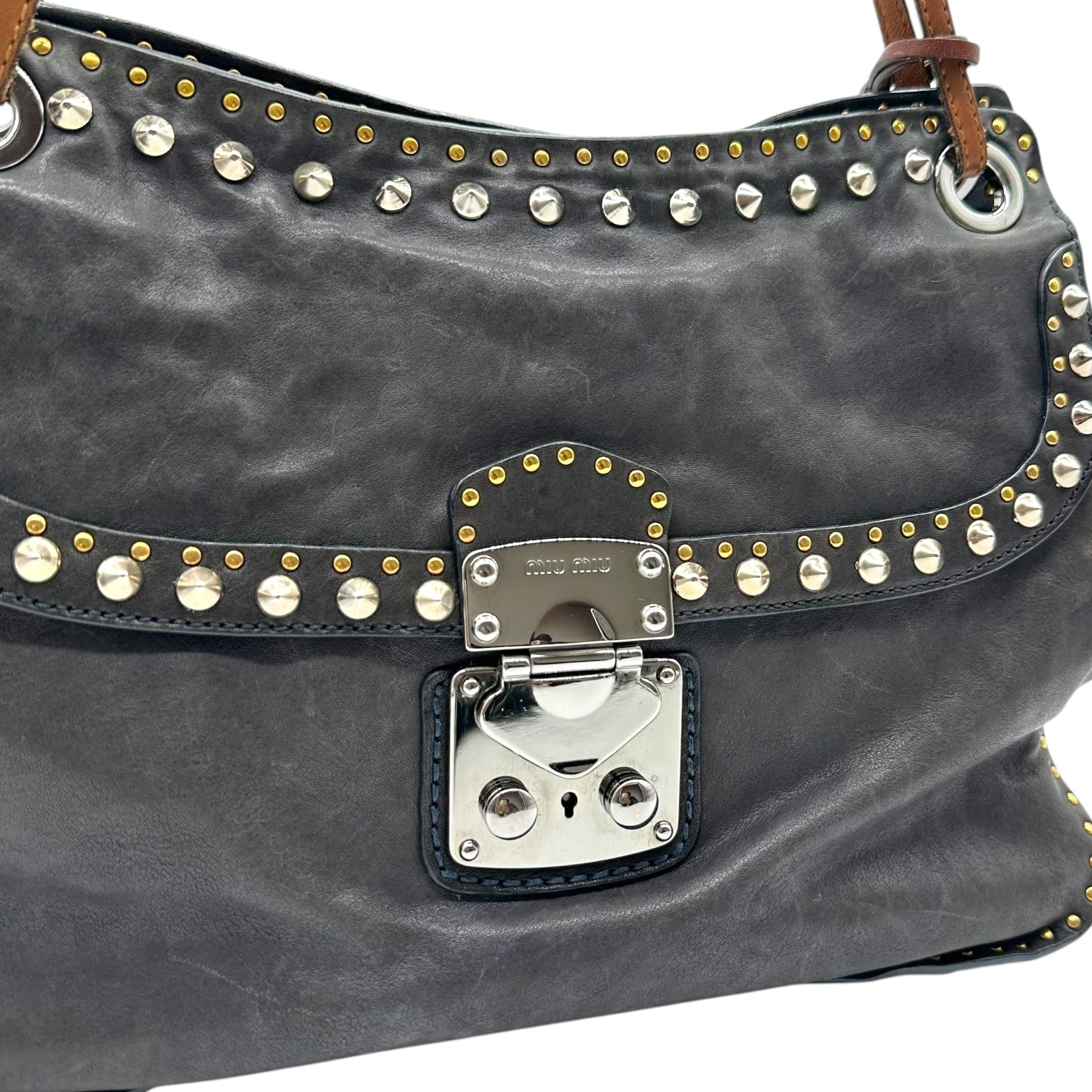 Miu Miu Gray & Brown Studded Leather Hobo Bag