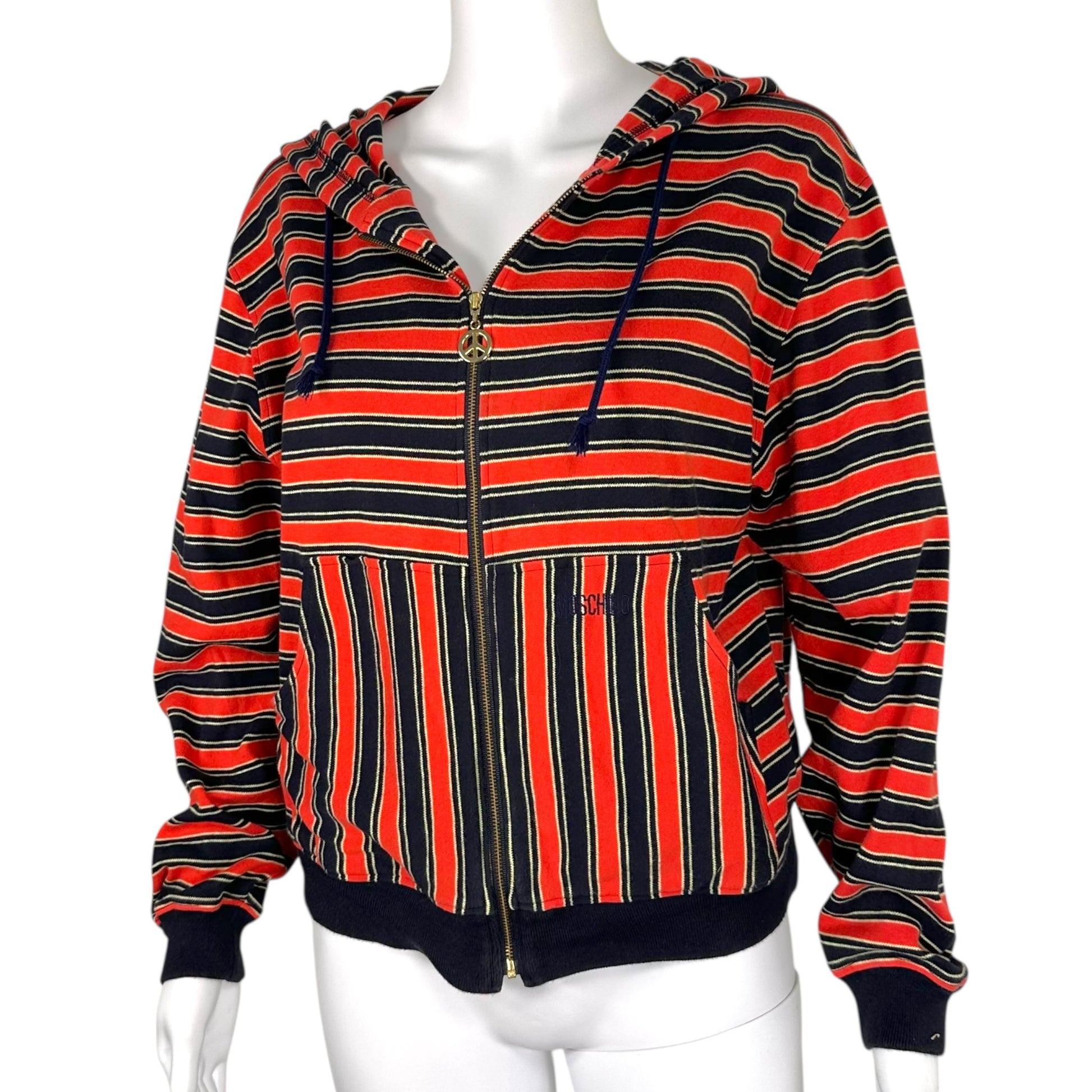 Moschino Jeans Red & Black Striped Logo Hoodie