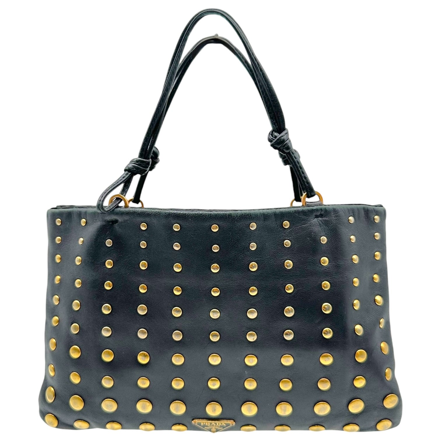 Prada Black Leather Gold Studded Mini Bag