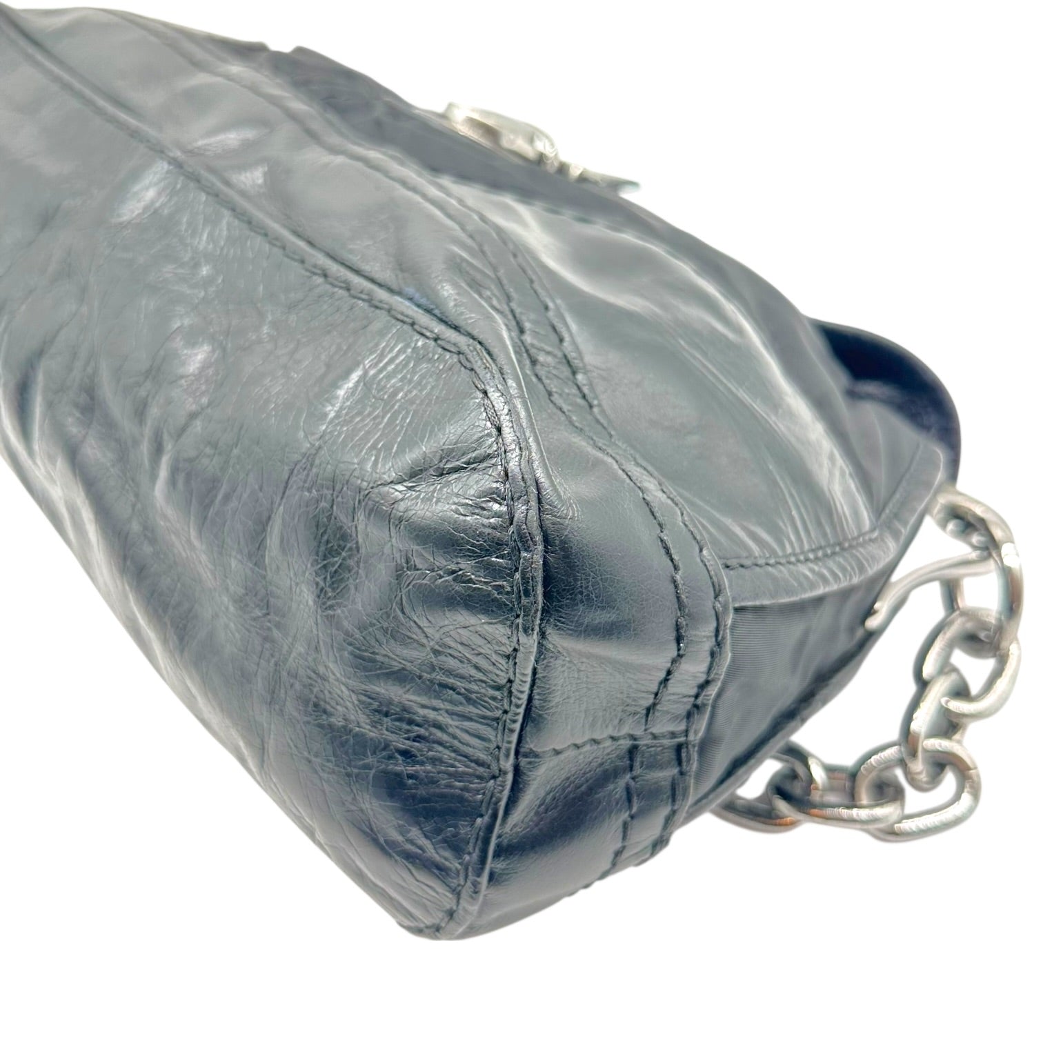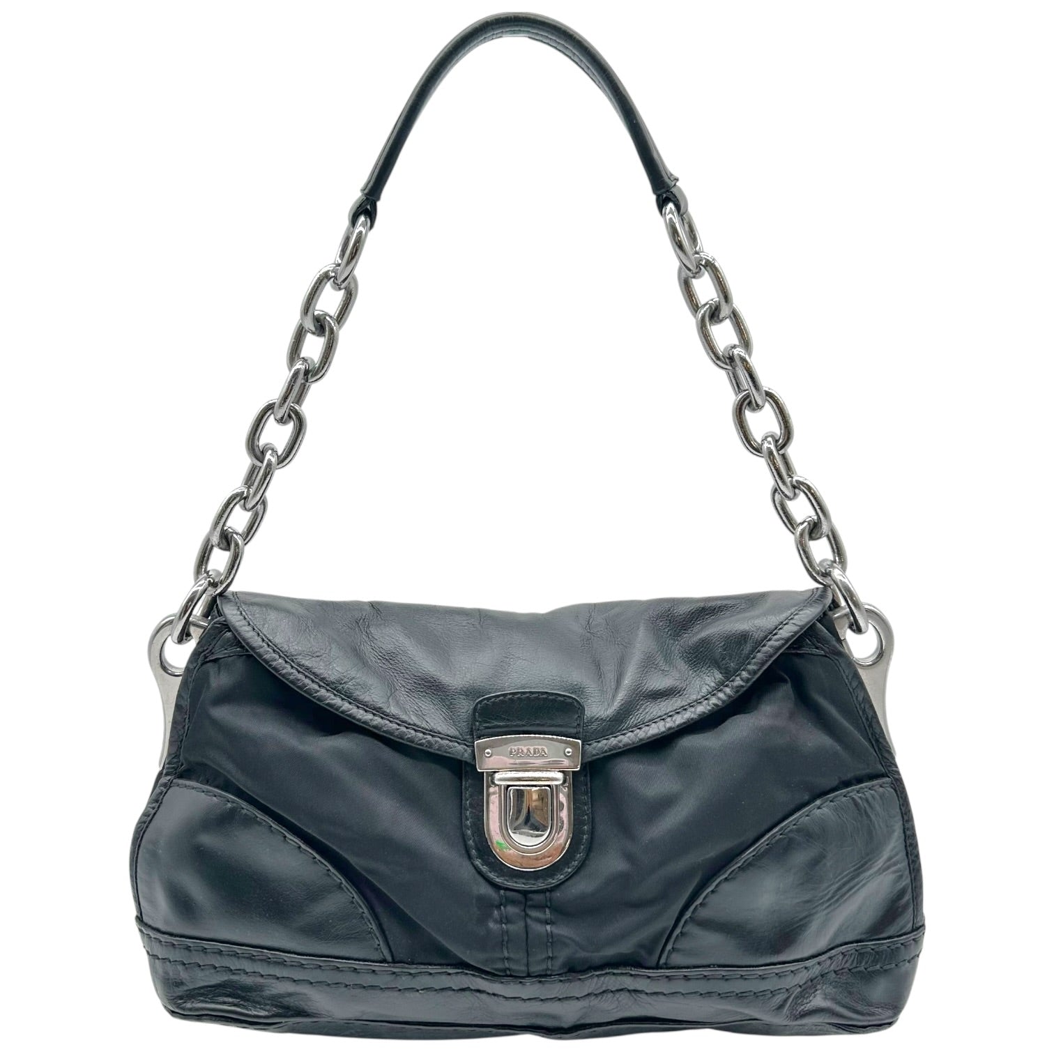 Prada Black Leather & Nylon Chain Strap Shoulder Bag