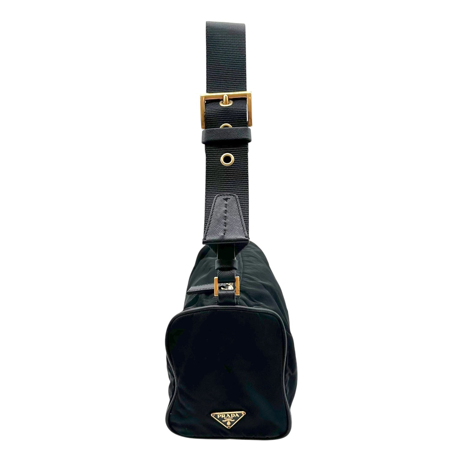 Prada Black Nylon & Gold Hardware Shoulder Bag