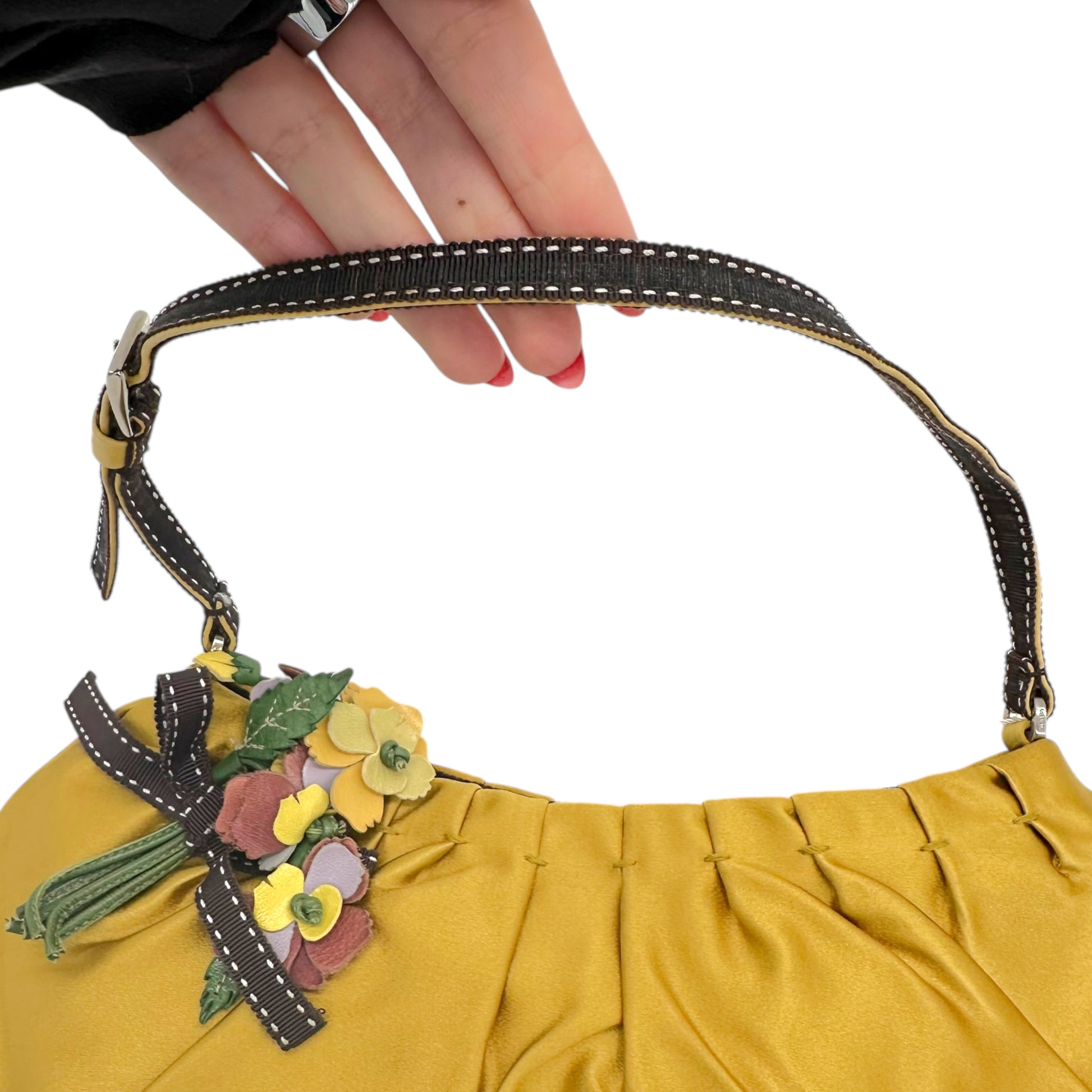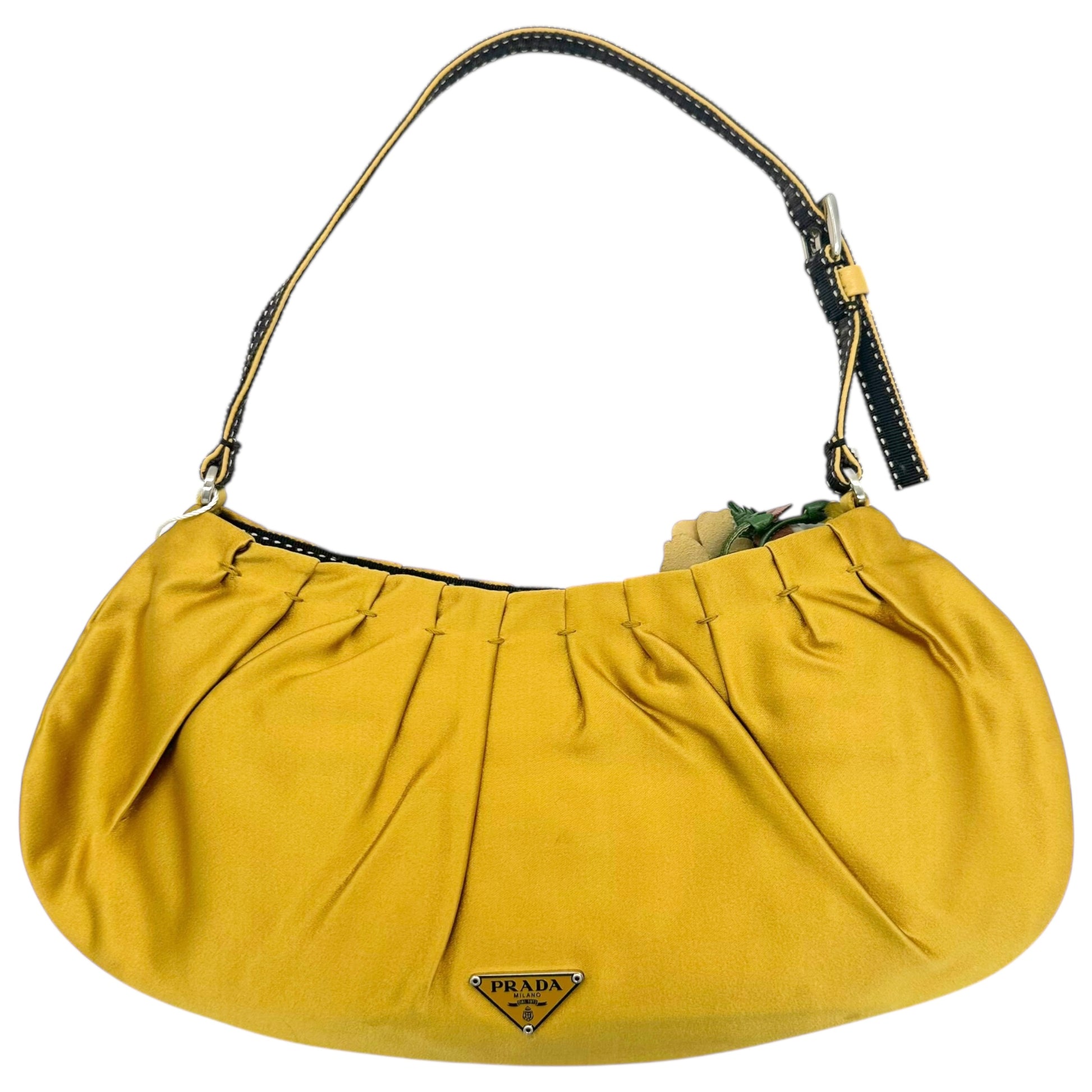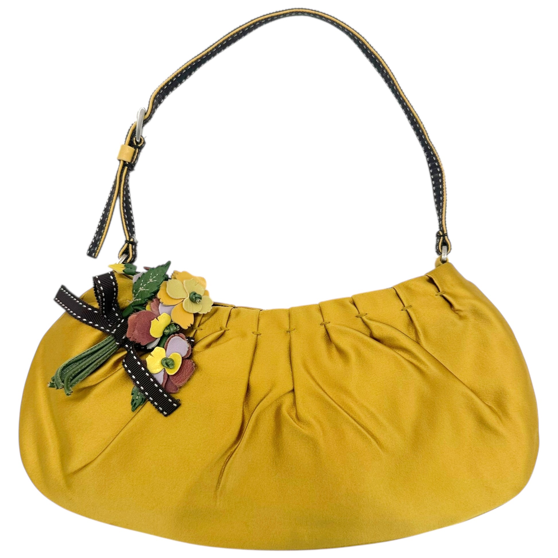 Prada Yellow Silk Floral Applique Shoulder Bag