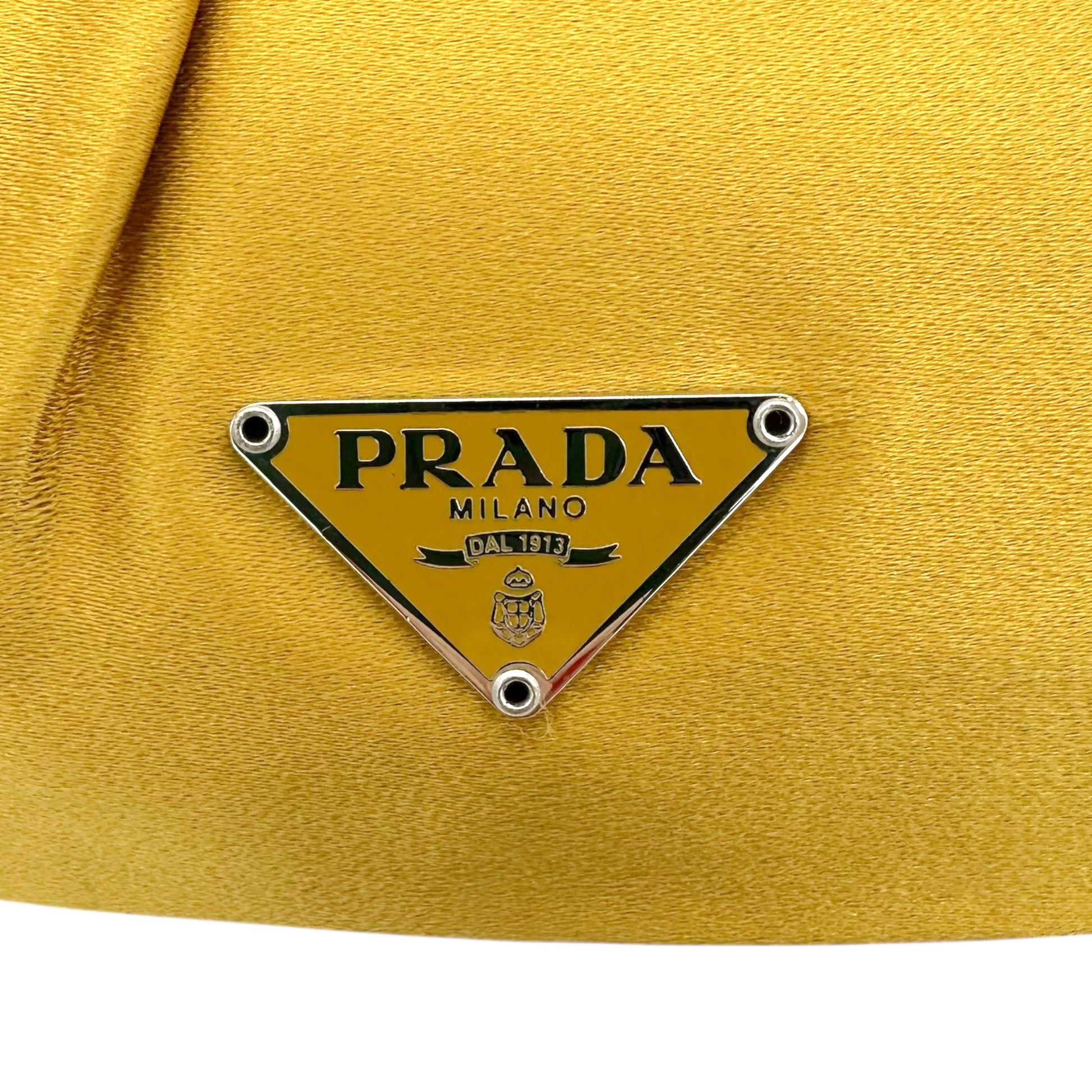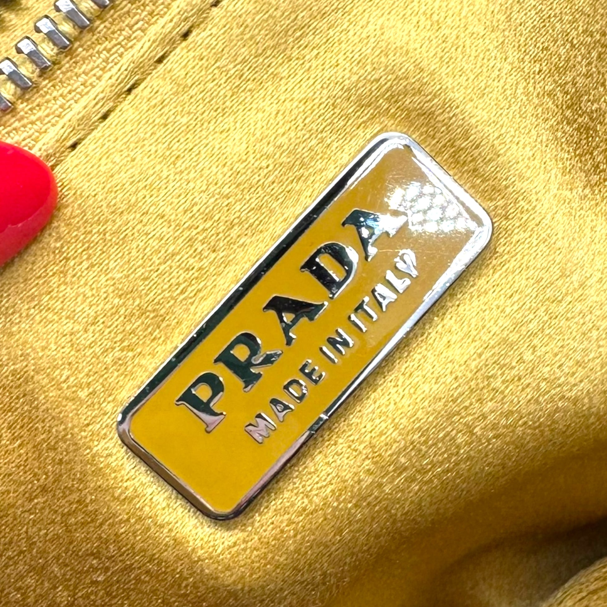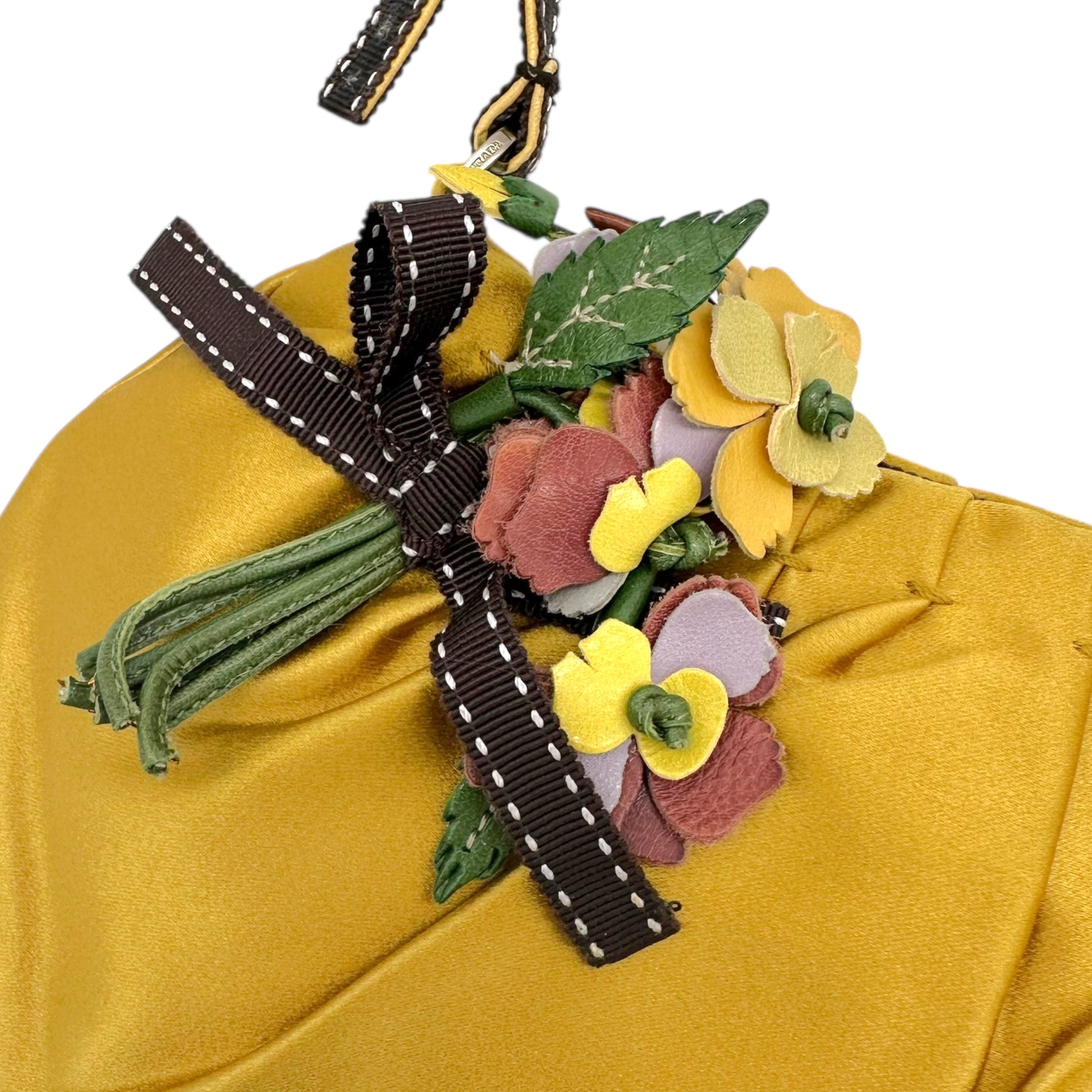 Prada Yellow Silk Floral Applique Shoulder Bag