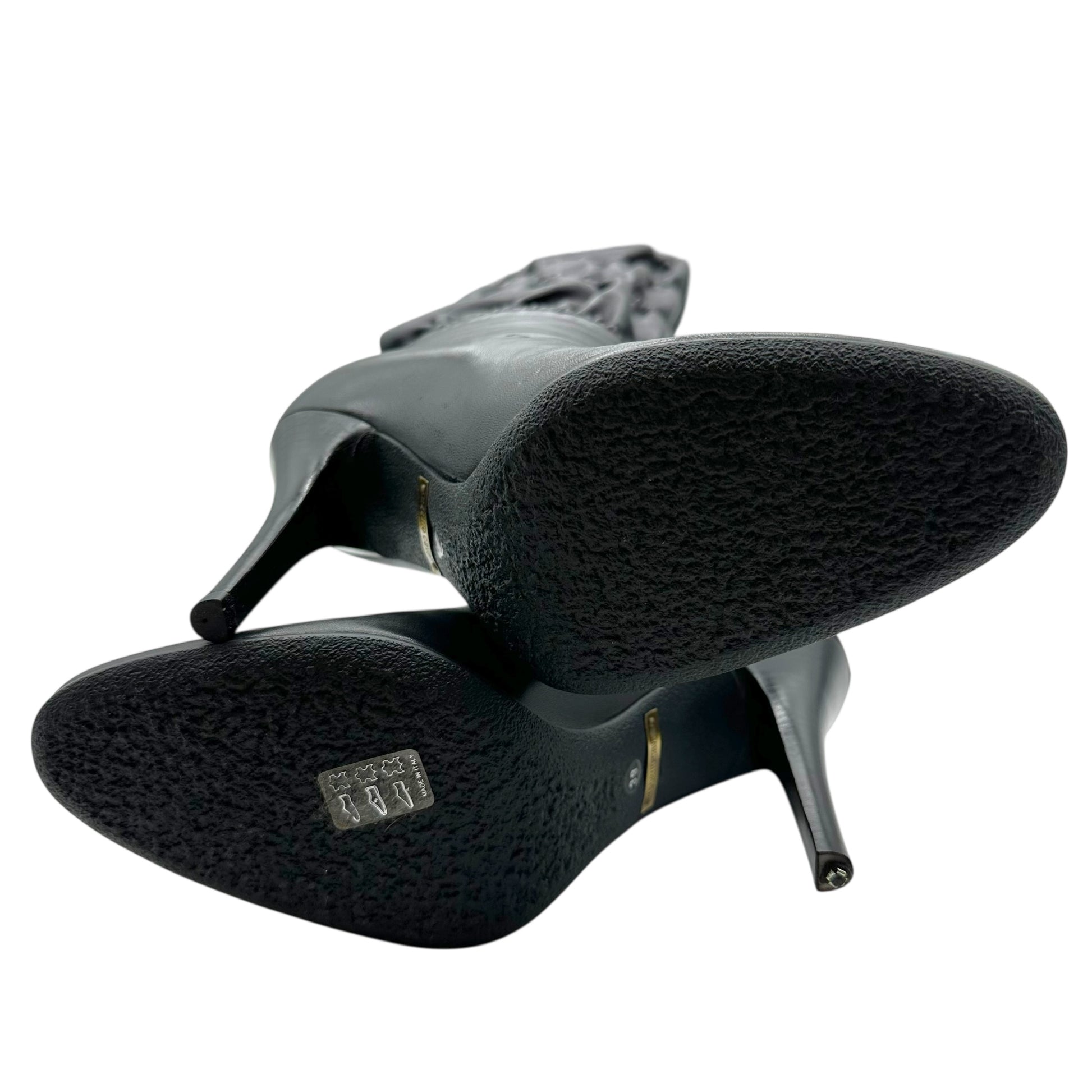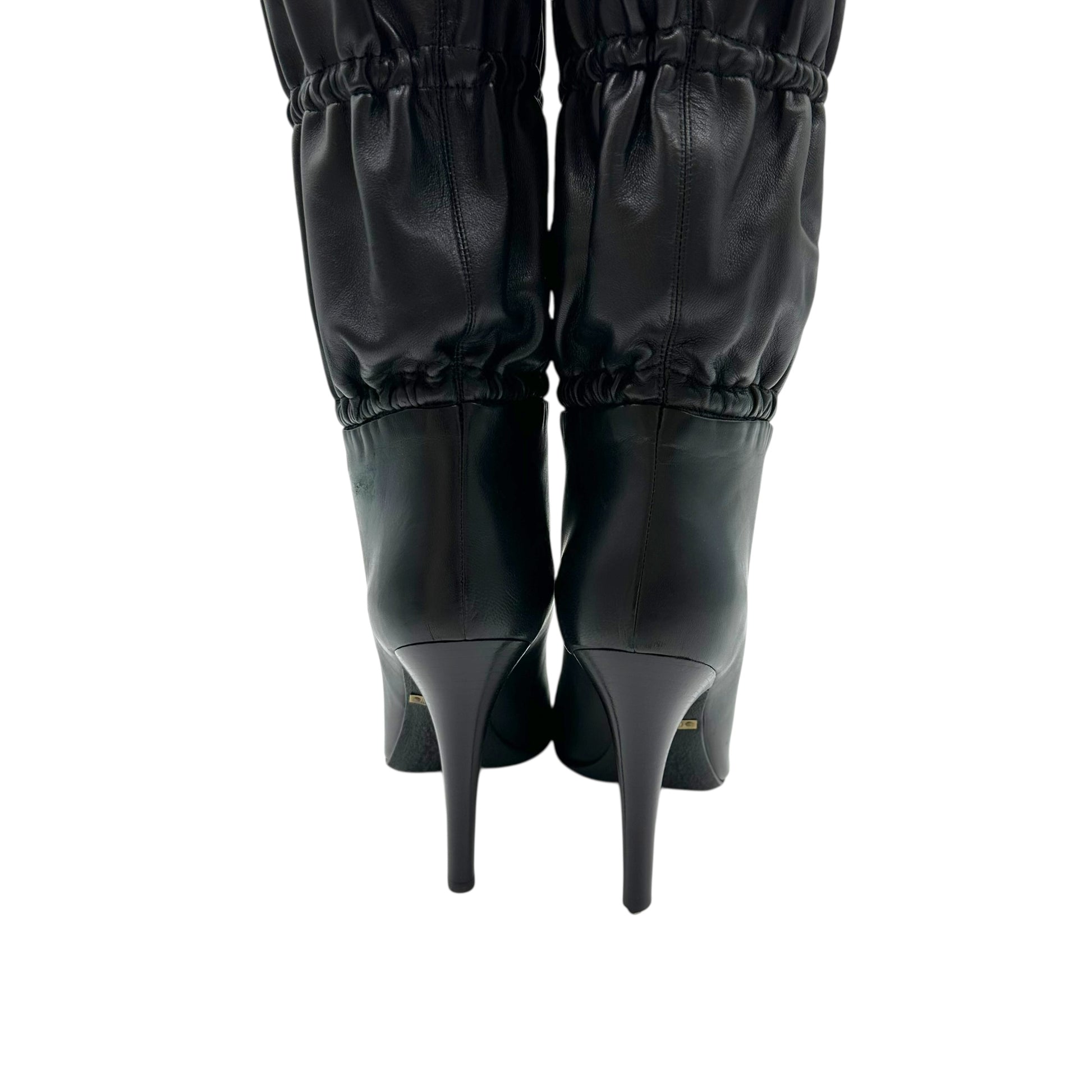 Roberto Cavalli Black Leather Gathered Leather Knee High Heeled Boots
