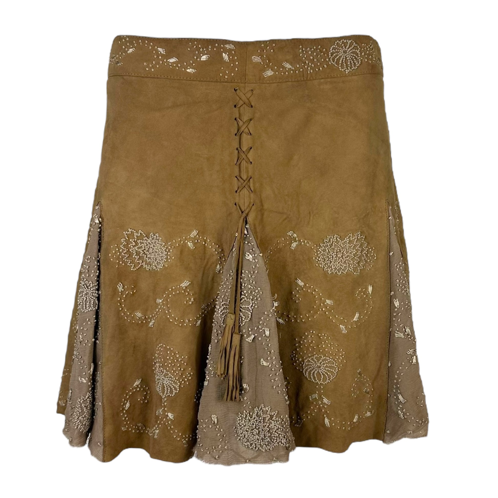 Roberto Cavalli Class Brown Suede Embroidered Mini Skirt