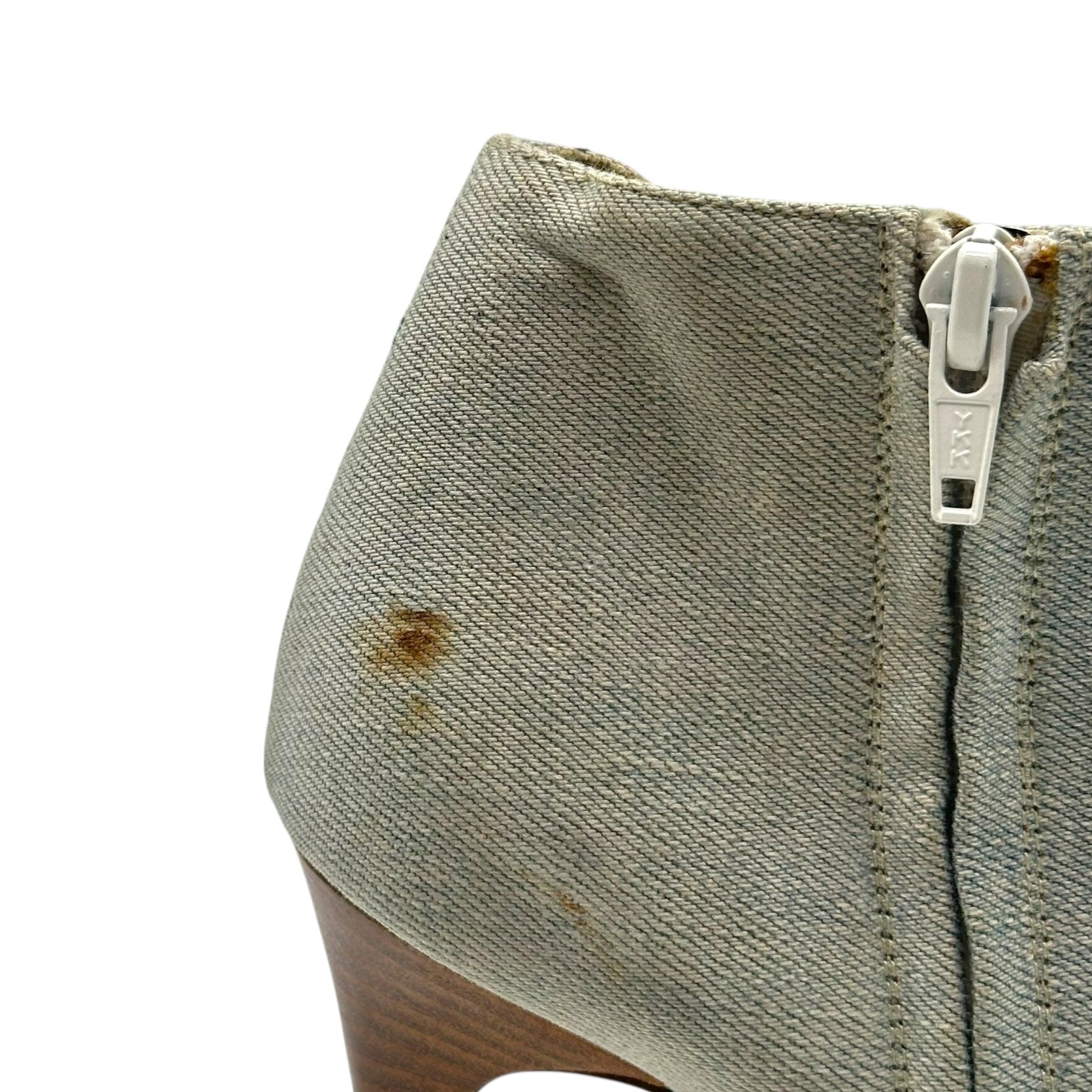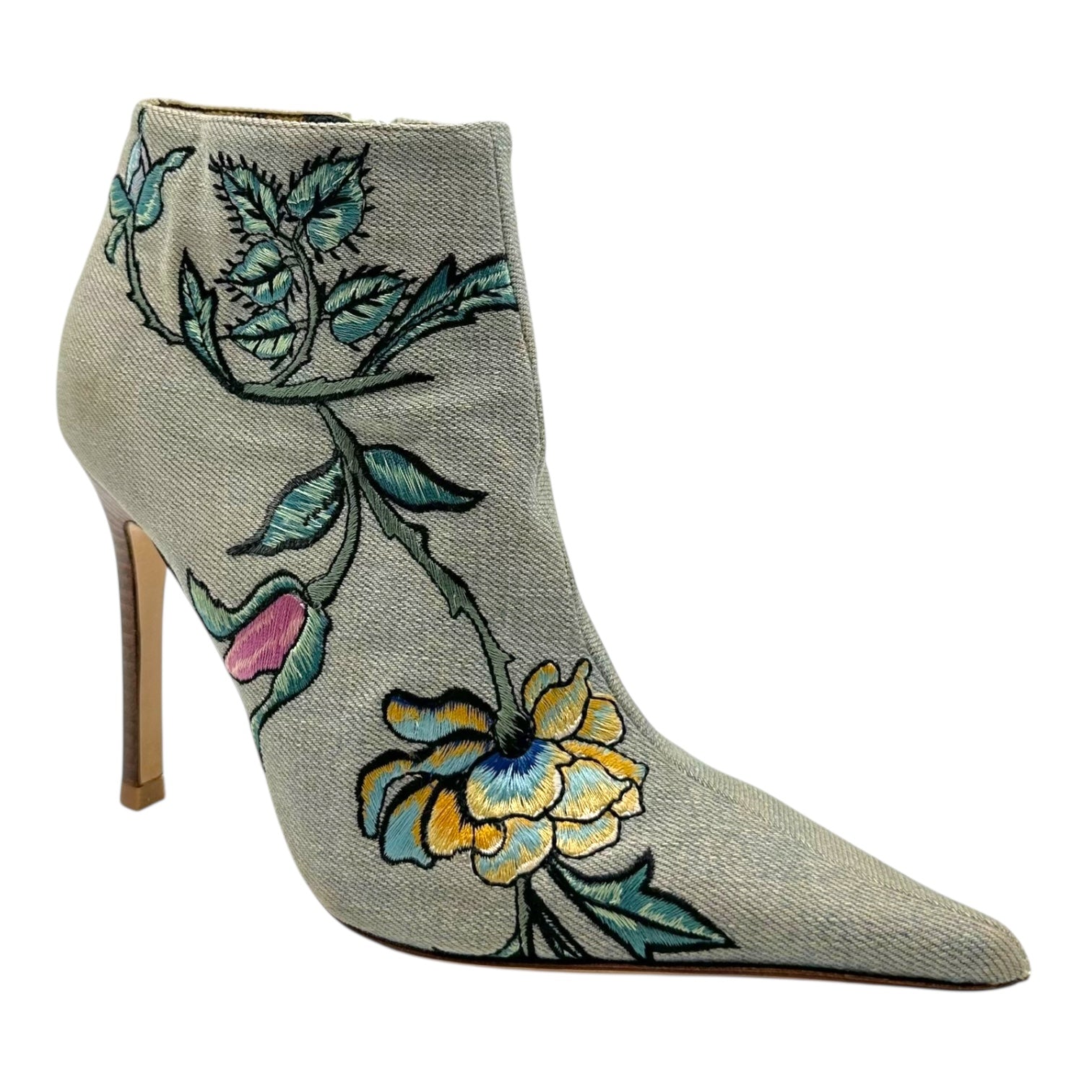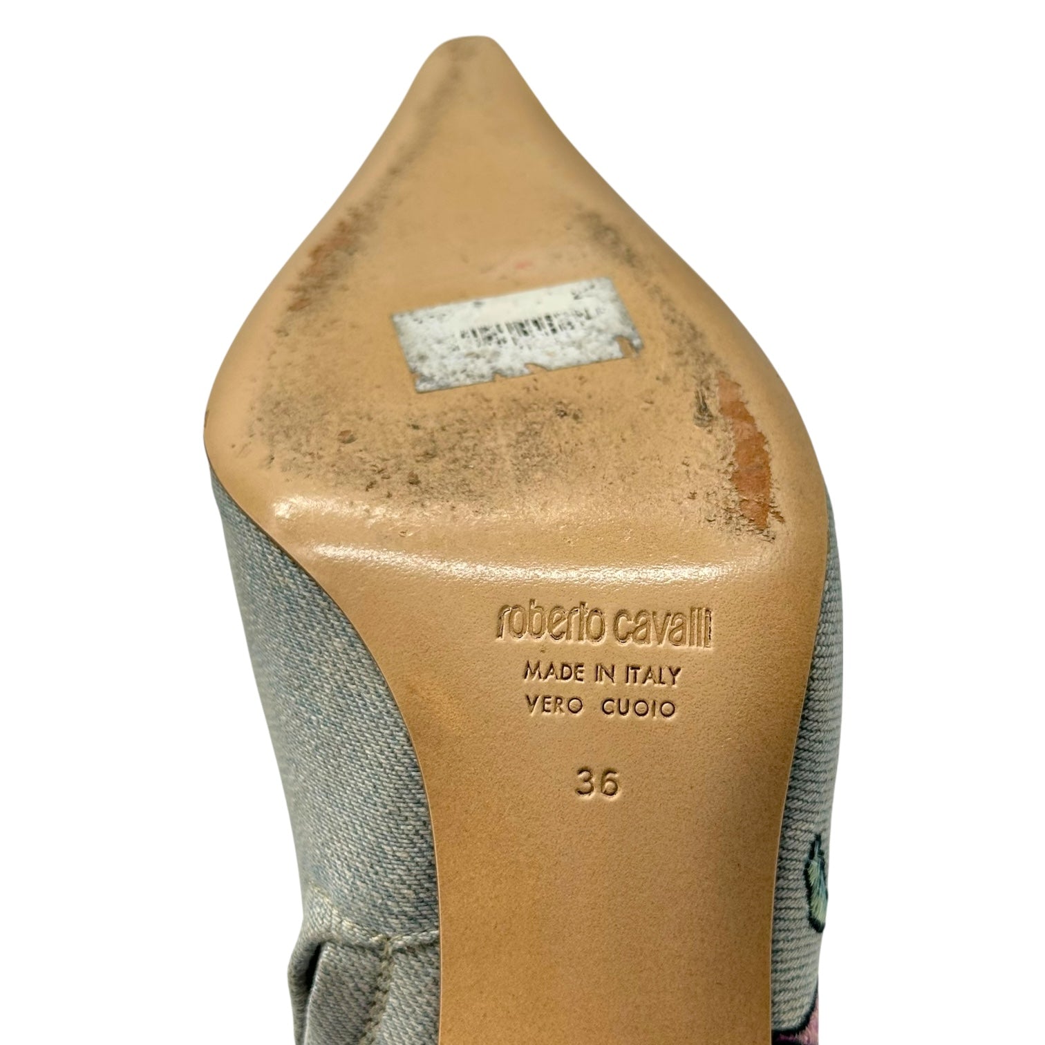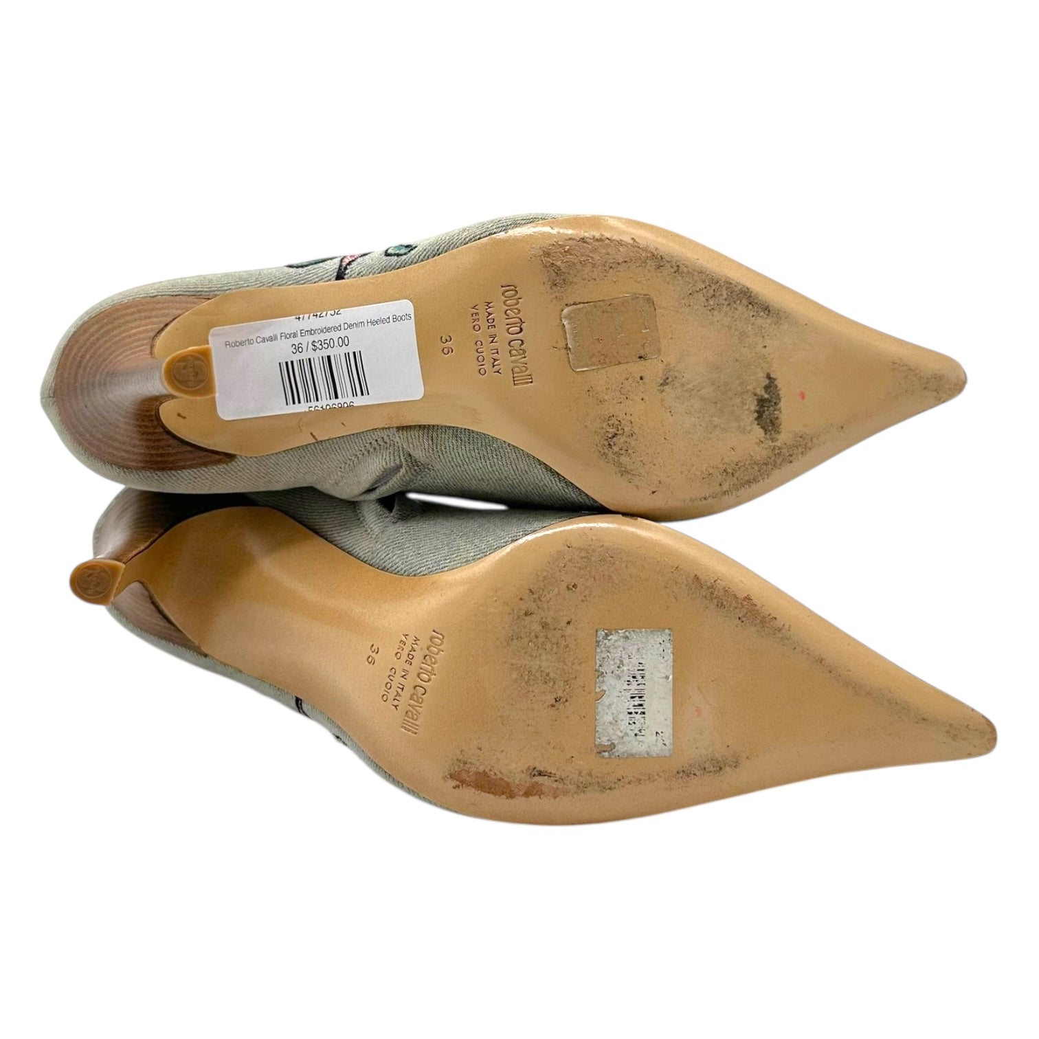 Roberto Cavalli Floral Embroidered Denim Heeled Boots