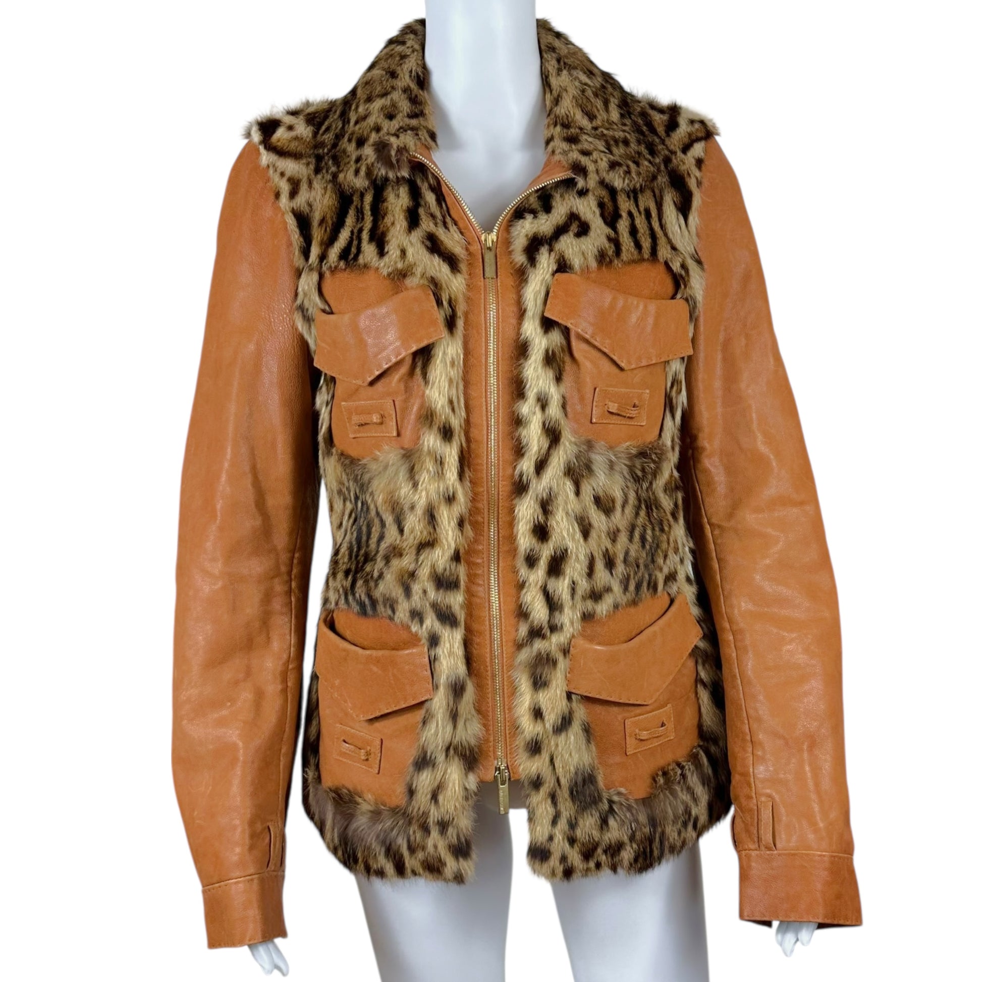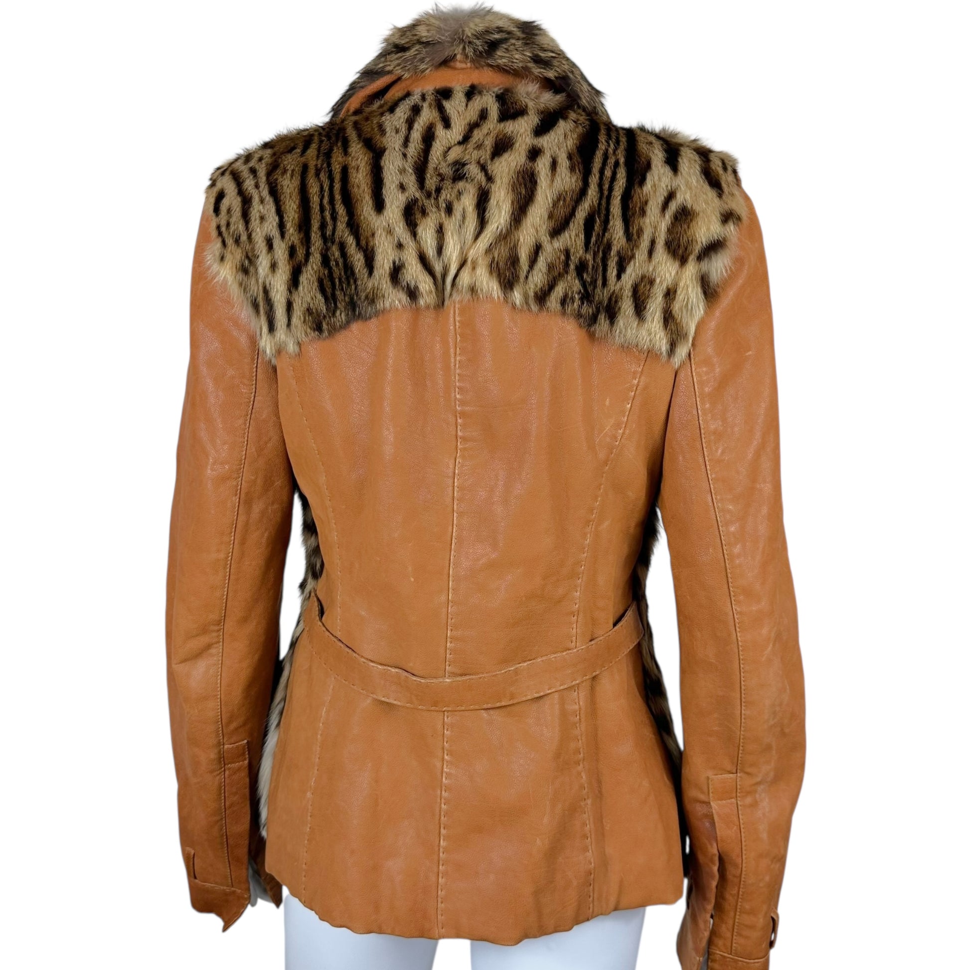 Roberto Cavalli Leopard Print Fur & Tan Leather Jacket