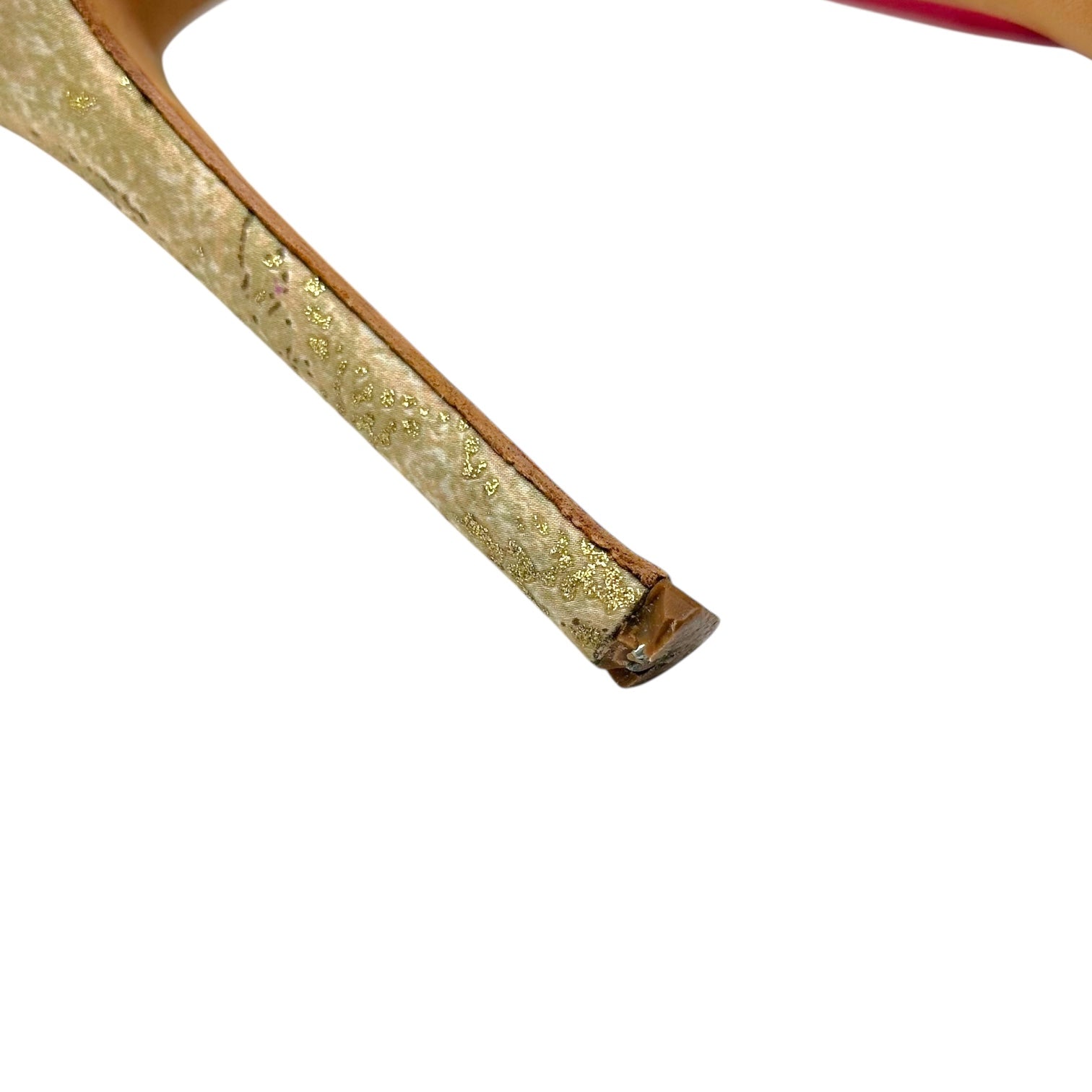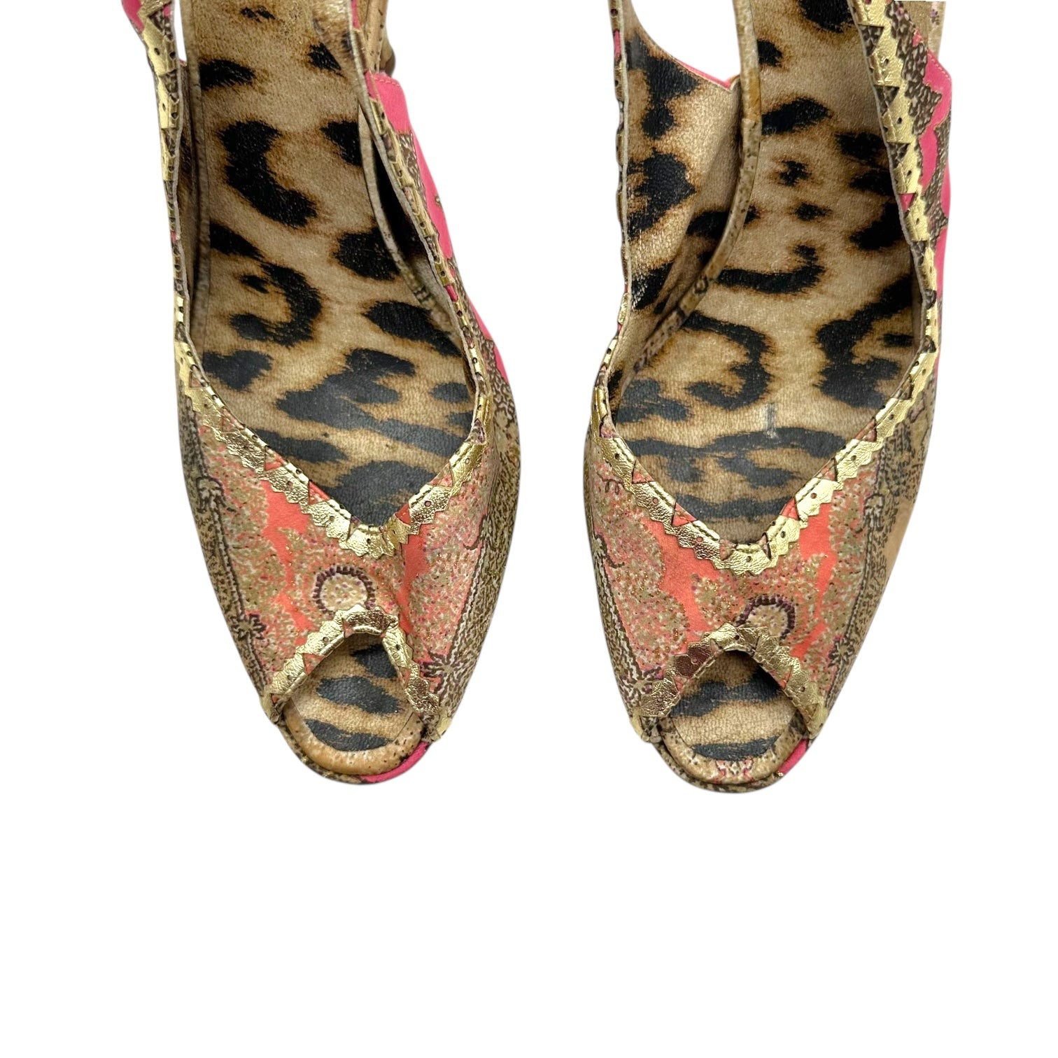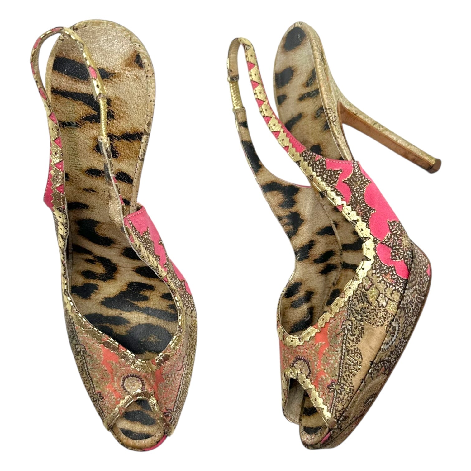 Roberto Cavalli Pink Metallic Paisley Silk Slingback Pumps