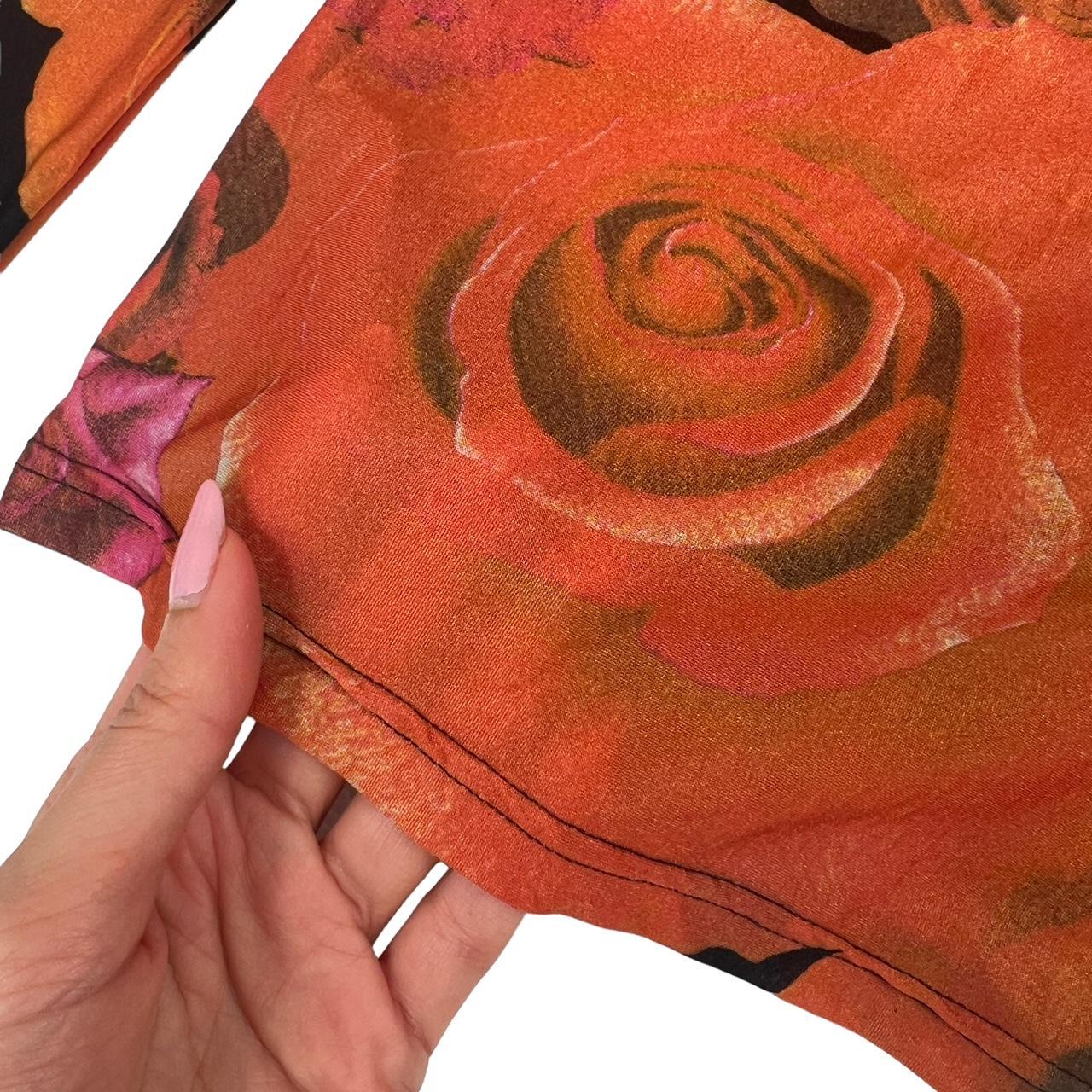 Roberto Cavalli Rose Print Semi-Sheer Mesh Long Sleeve Top