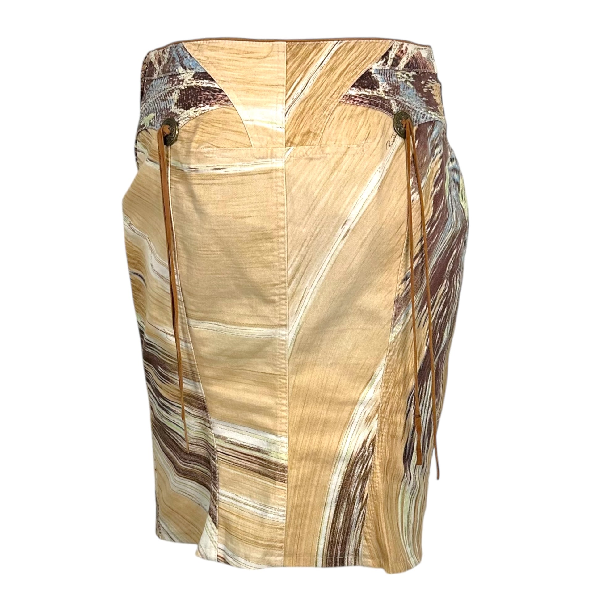 Roberto Cavalli S/S 2004 Feather Print Denim Midi Skirt