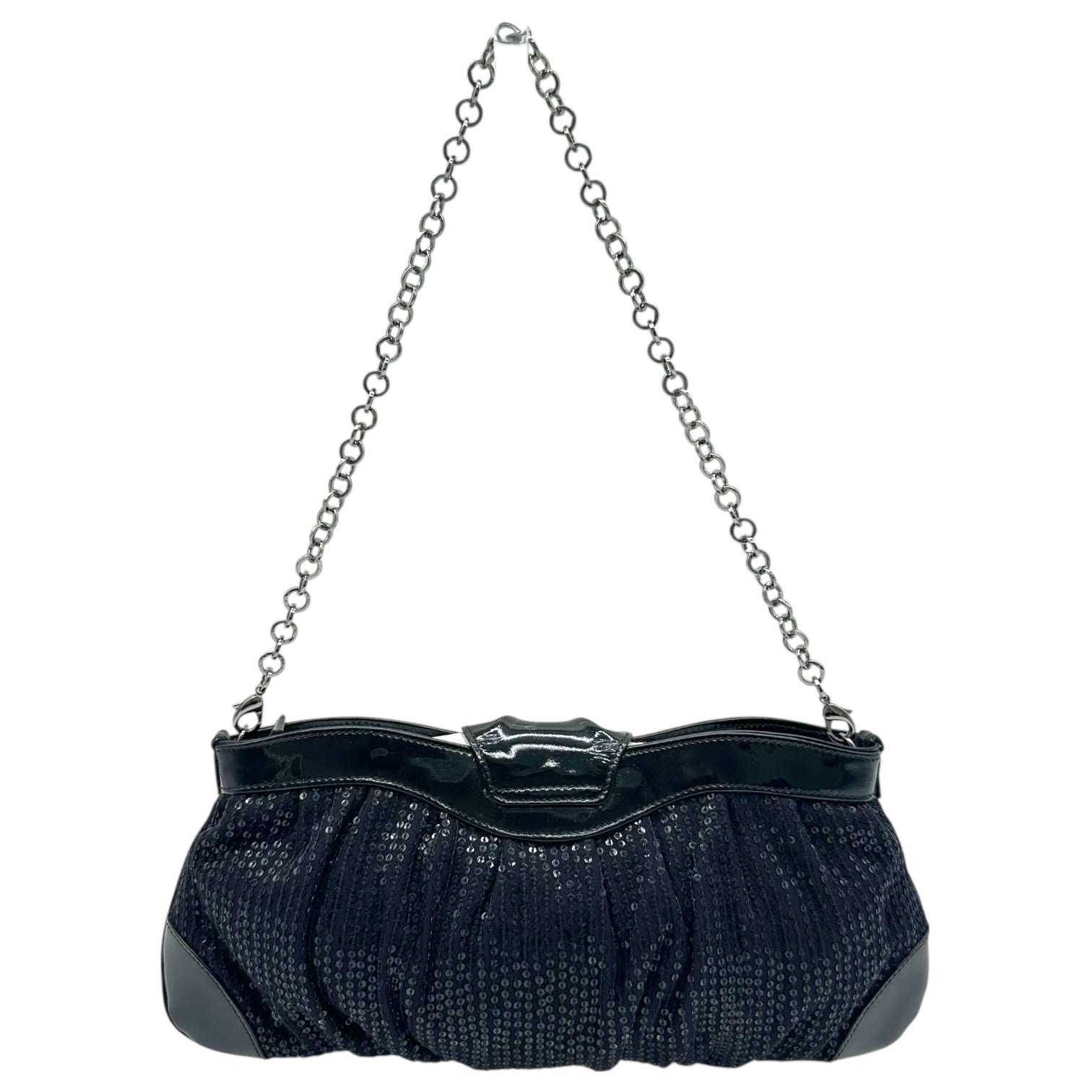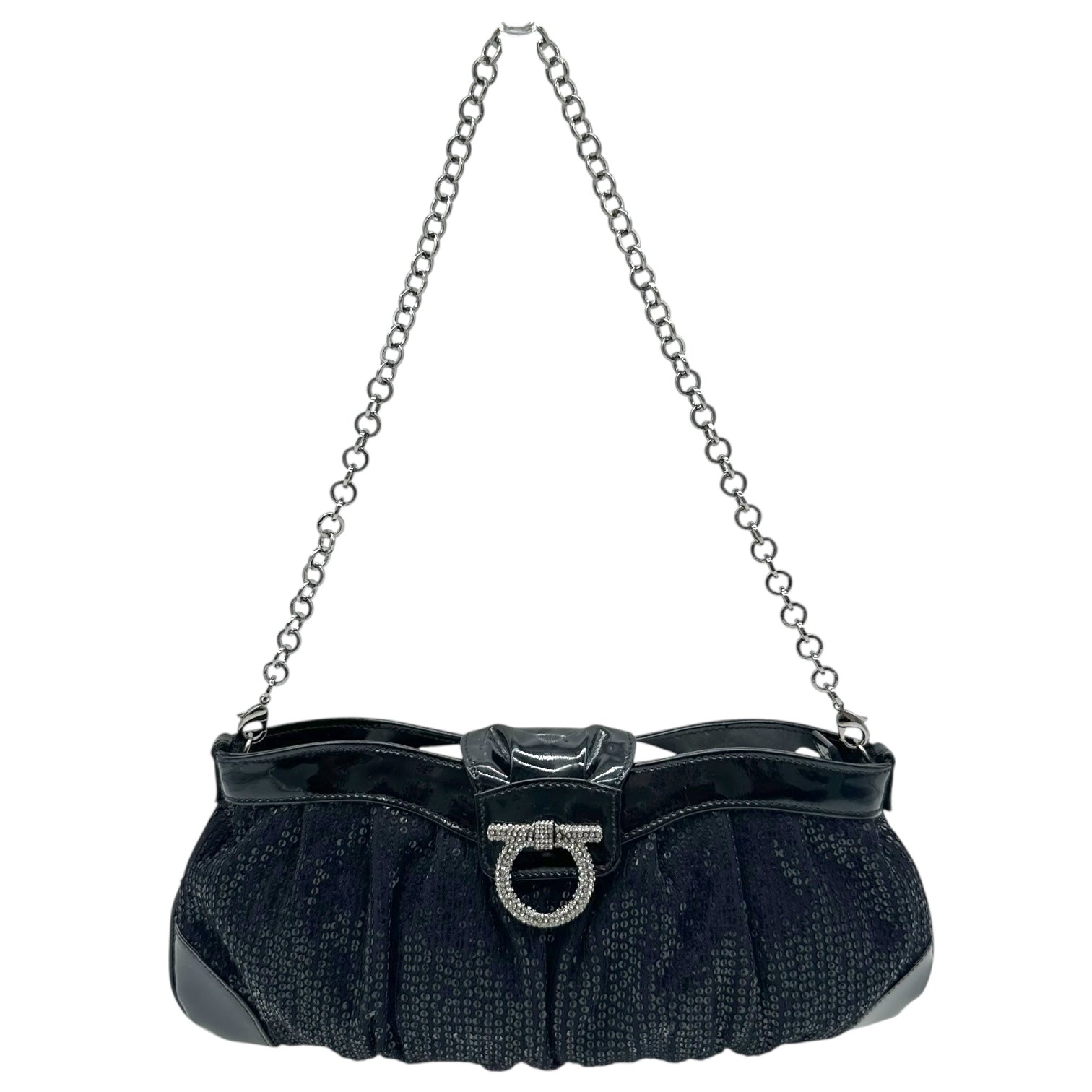 Salvatore Ferragamo Black Sequin & Crystal Gancini 2-Way Evening Bag