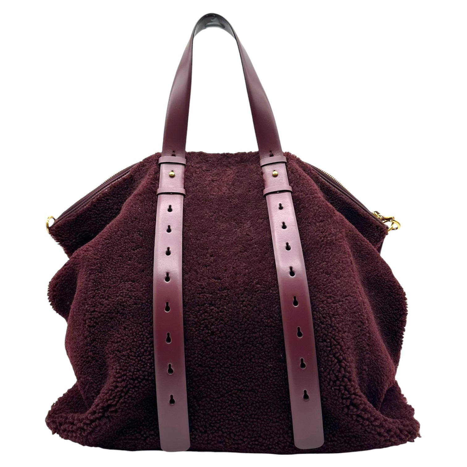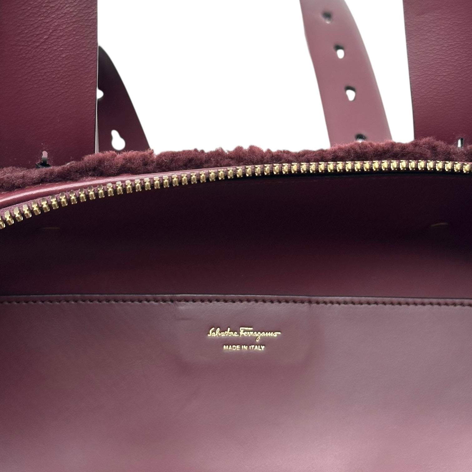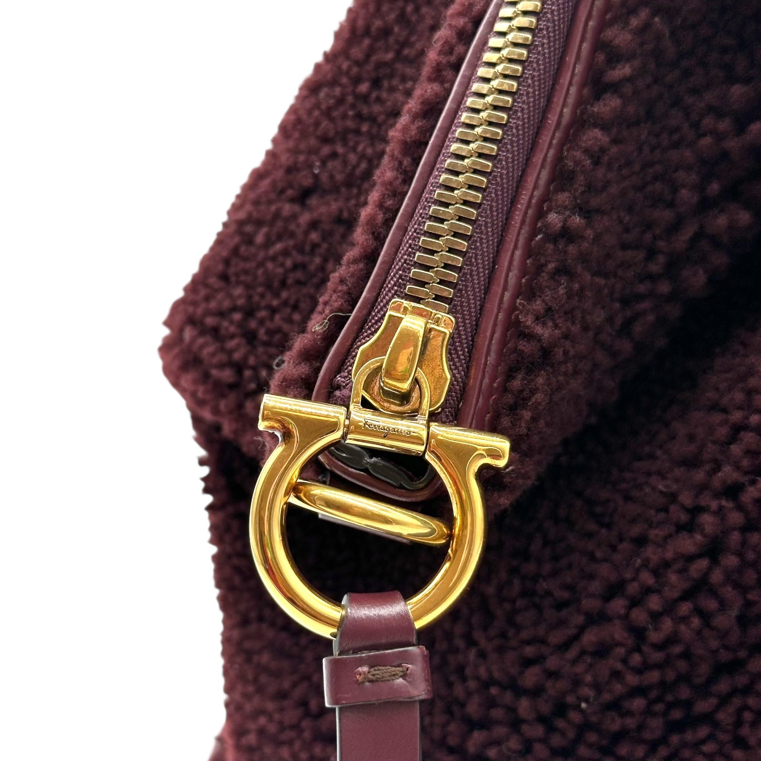 Salvatore Ferragamo Burgundy Shearling & Leather Tote Bag