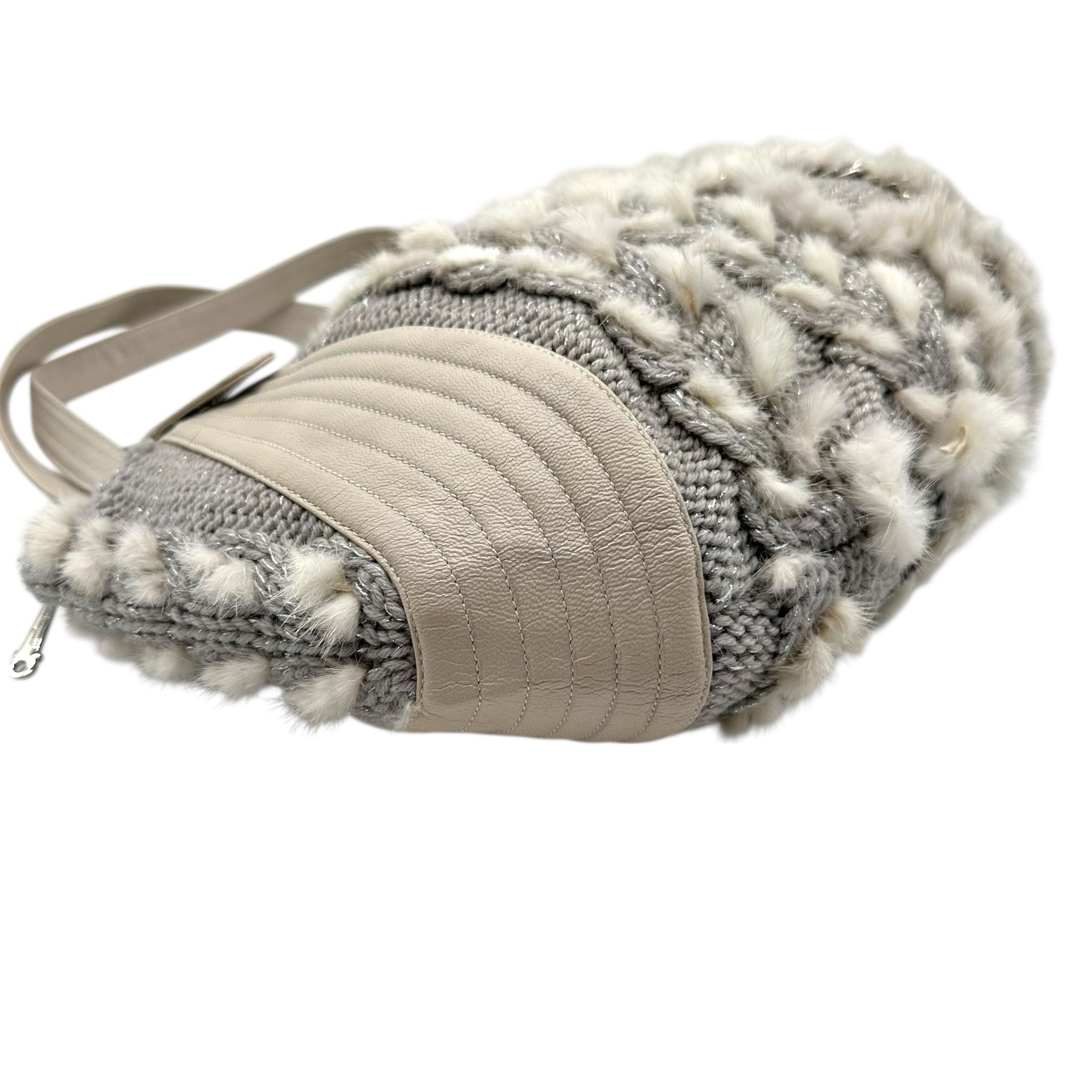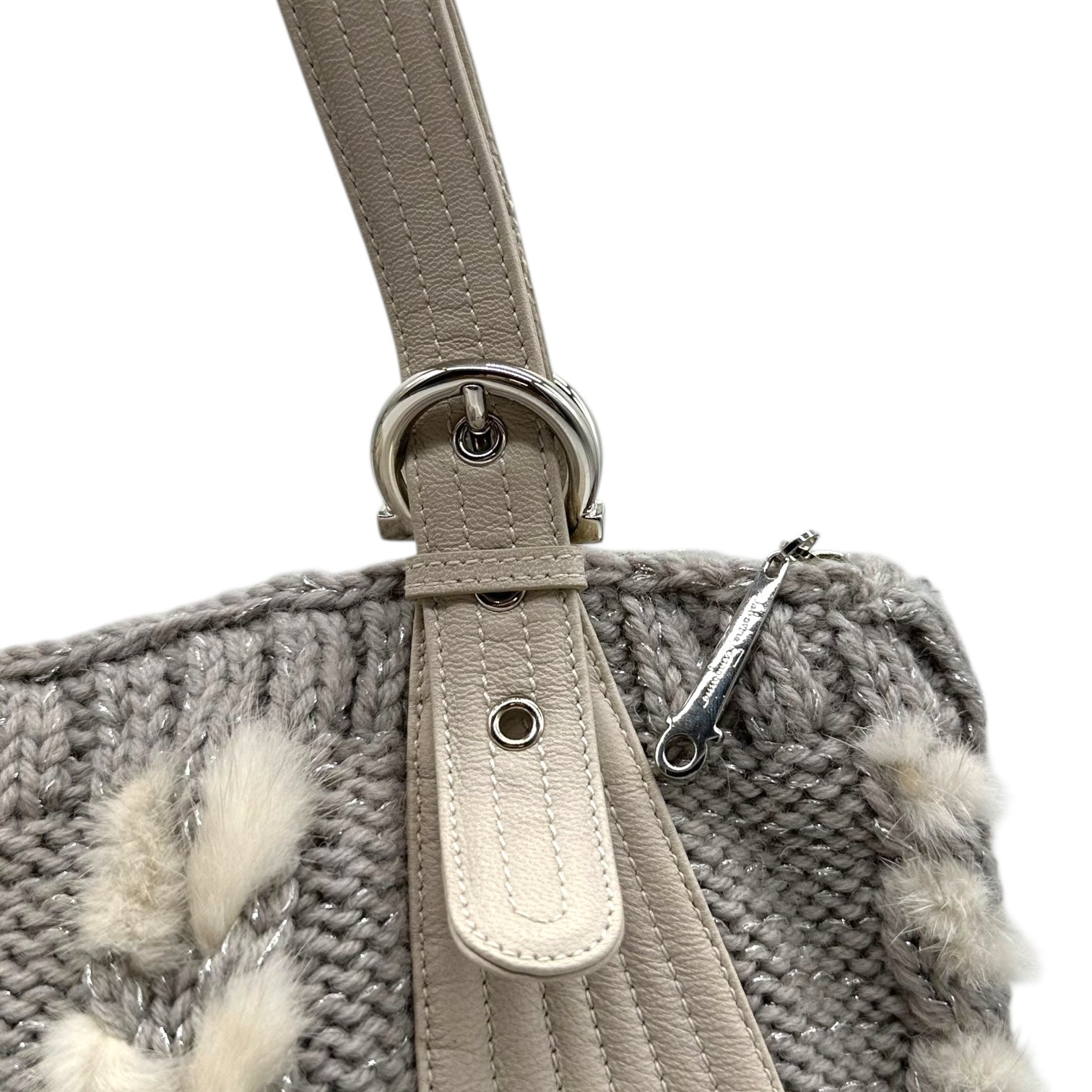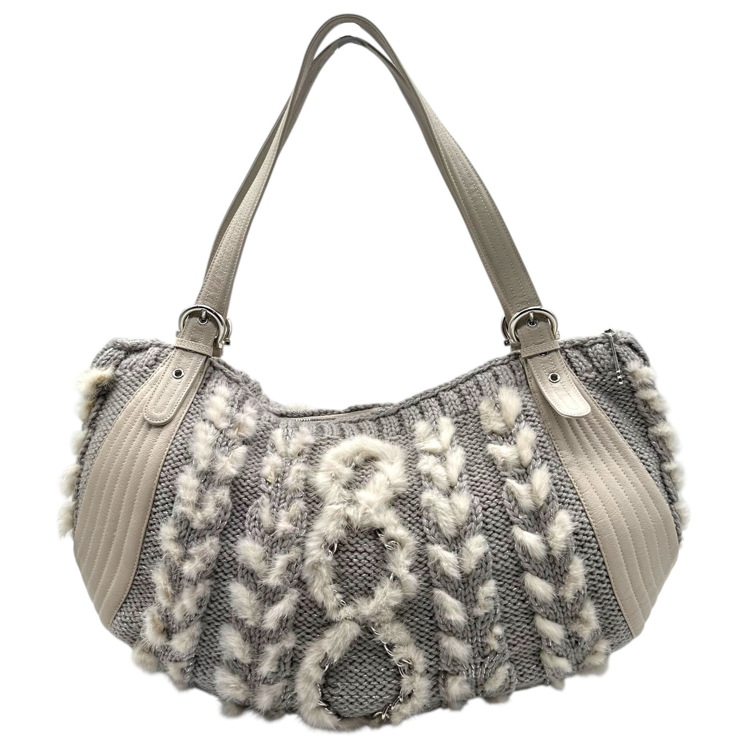 Salvatore Ferragamo Cable Knit & Rabbit Fur Shoulder Bag