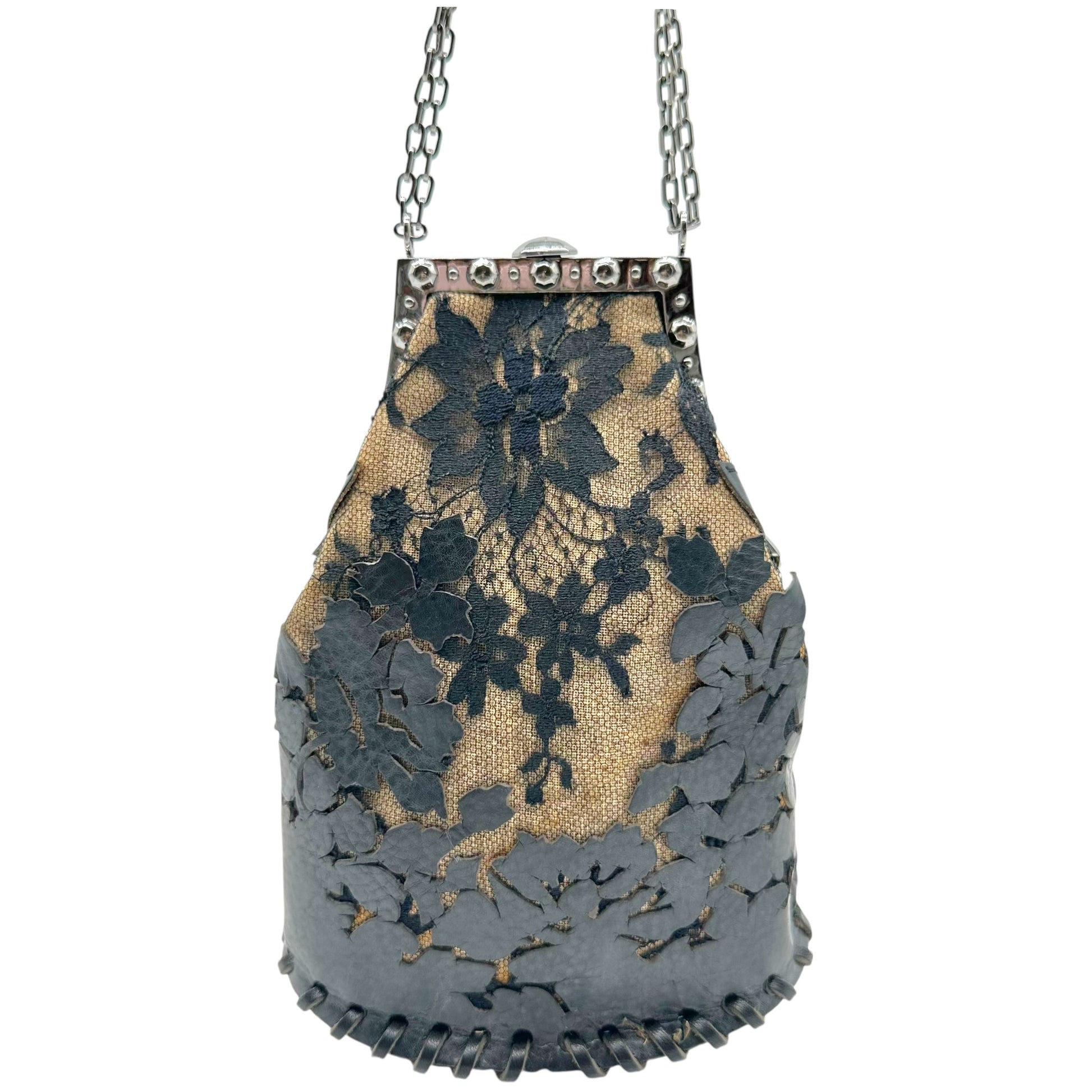 Valentino Garavani Black Lace Leather Applique Evening Bag