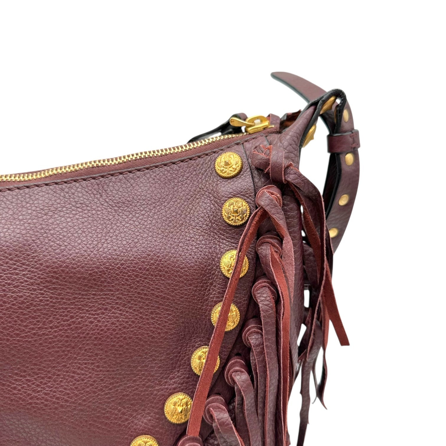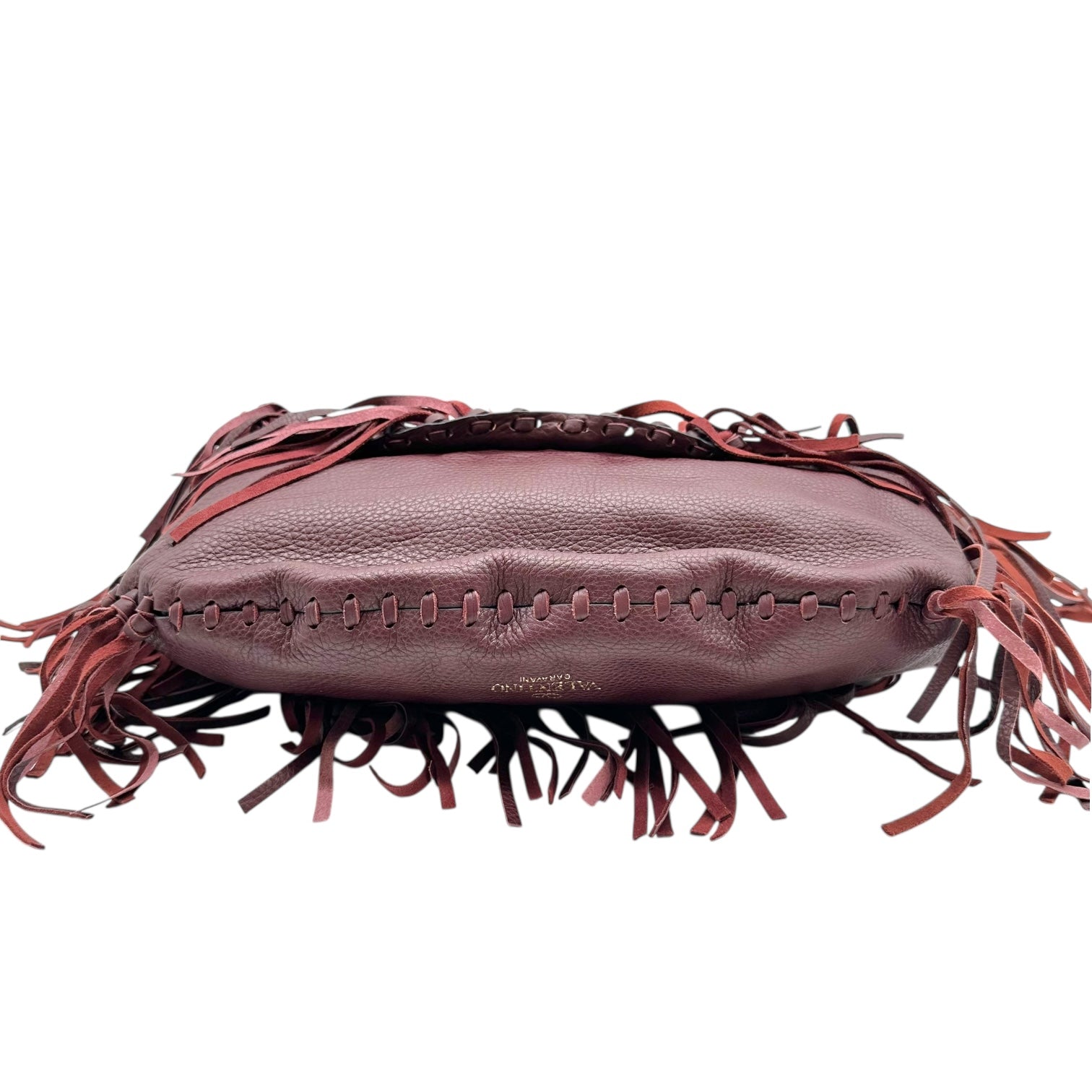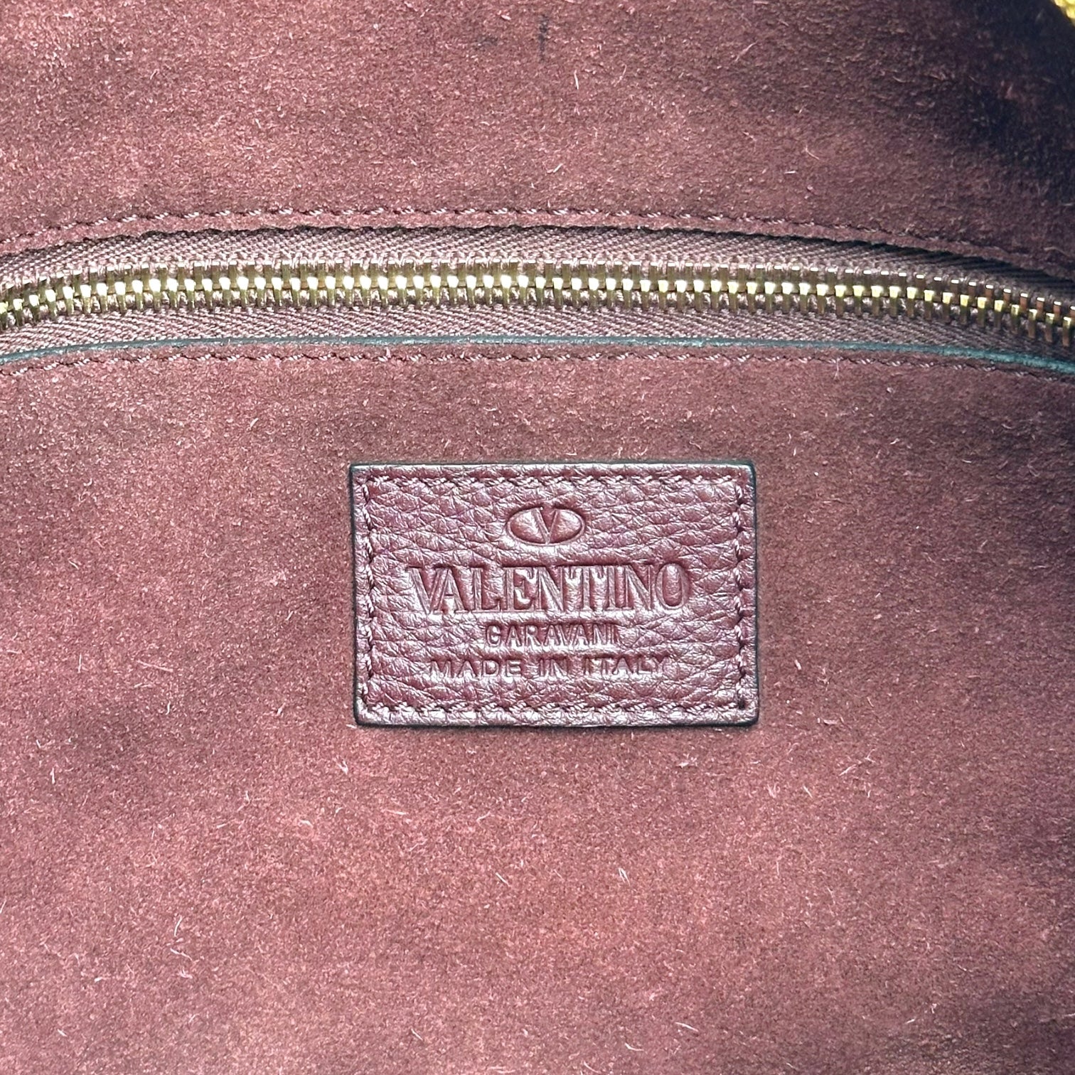 Valentino Garavani Burgundy & Gold Studded Fringe Satchel Bag