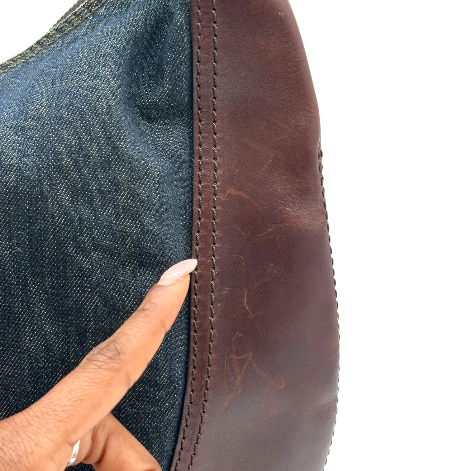 Valentino Garavani Denim & Leather Floral Embroidered Hobo Bag