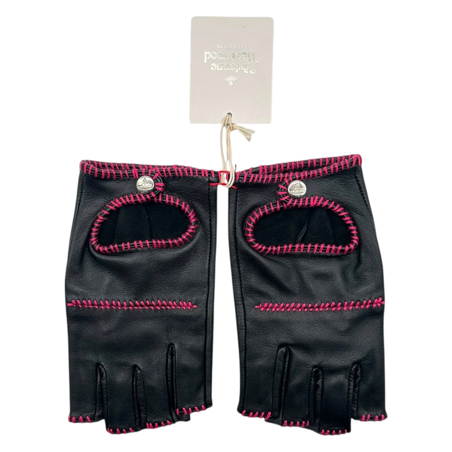Vivienne Westwood Black & Pink Lambskin Fingerless Gloves NEW
