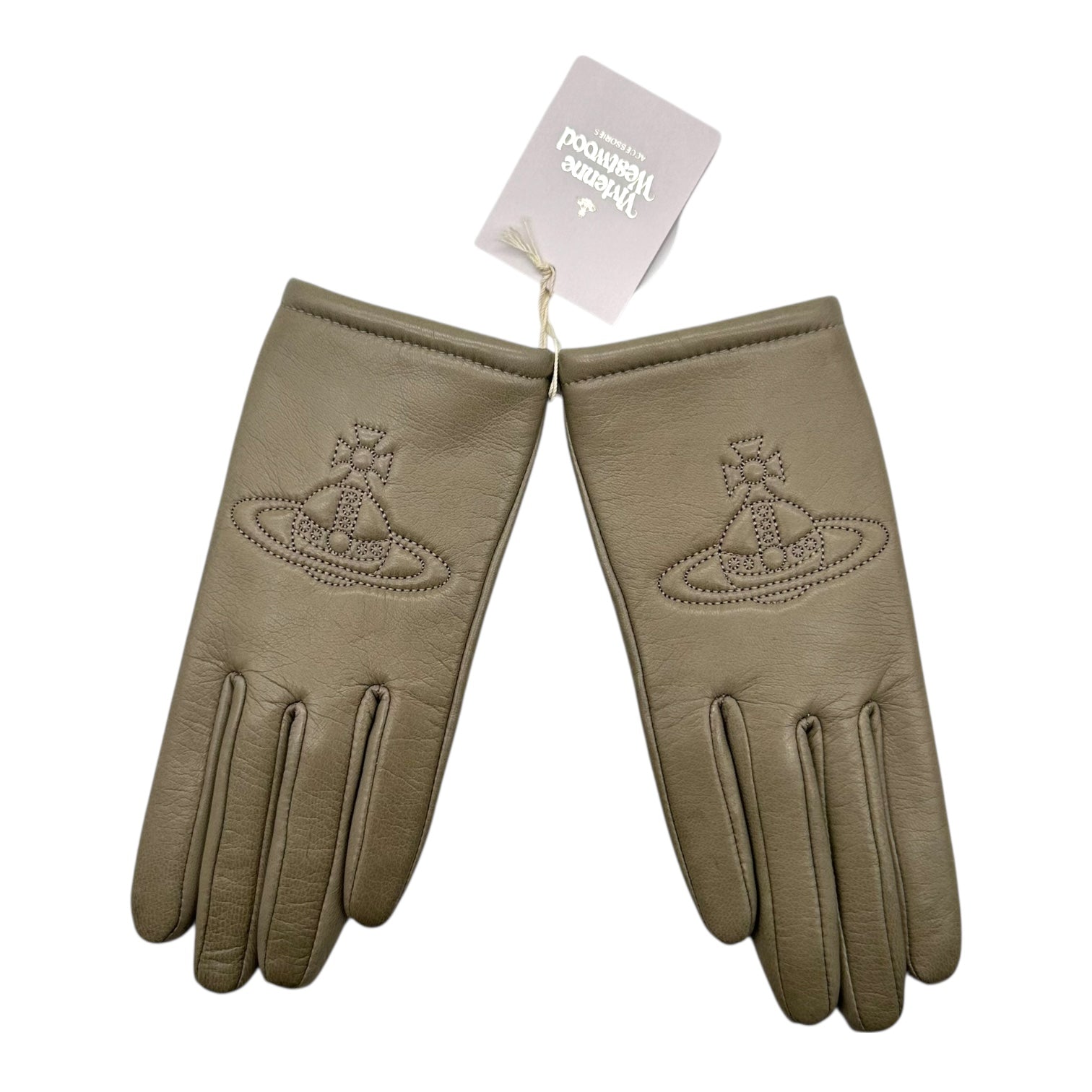 Vivienne Westwood Gray Lambskin Logo Gloves NEW